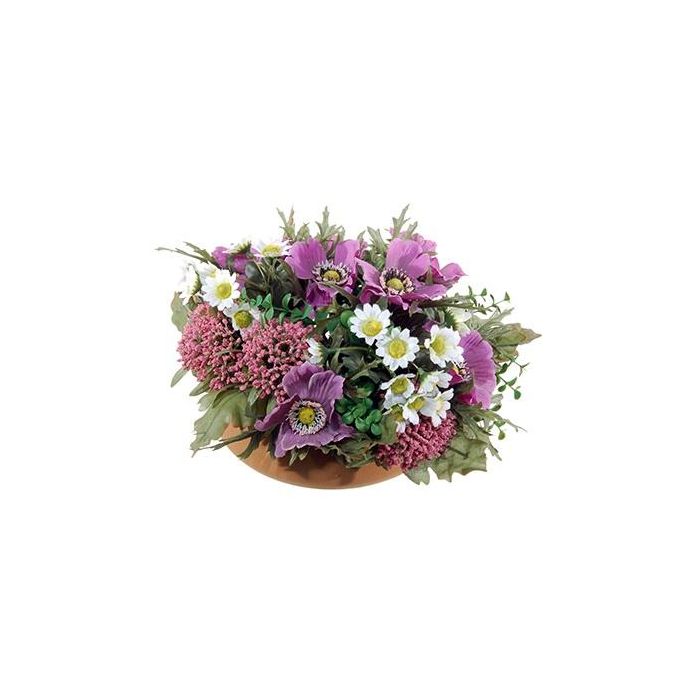 Kunst Blumengesteck Anemone, Astilbe IGNATIO auf Platte, violett-weiß, 17cm, Ø28cm