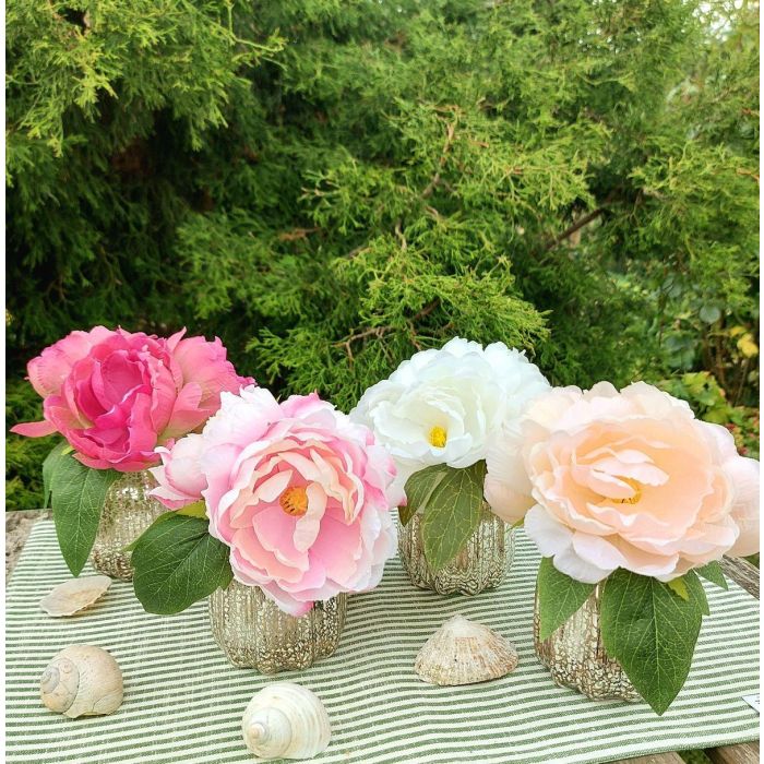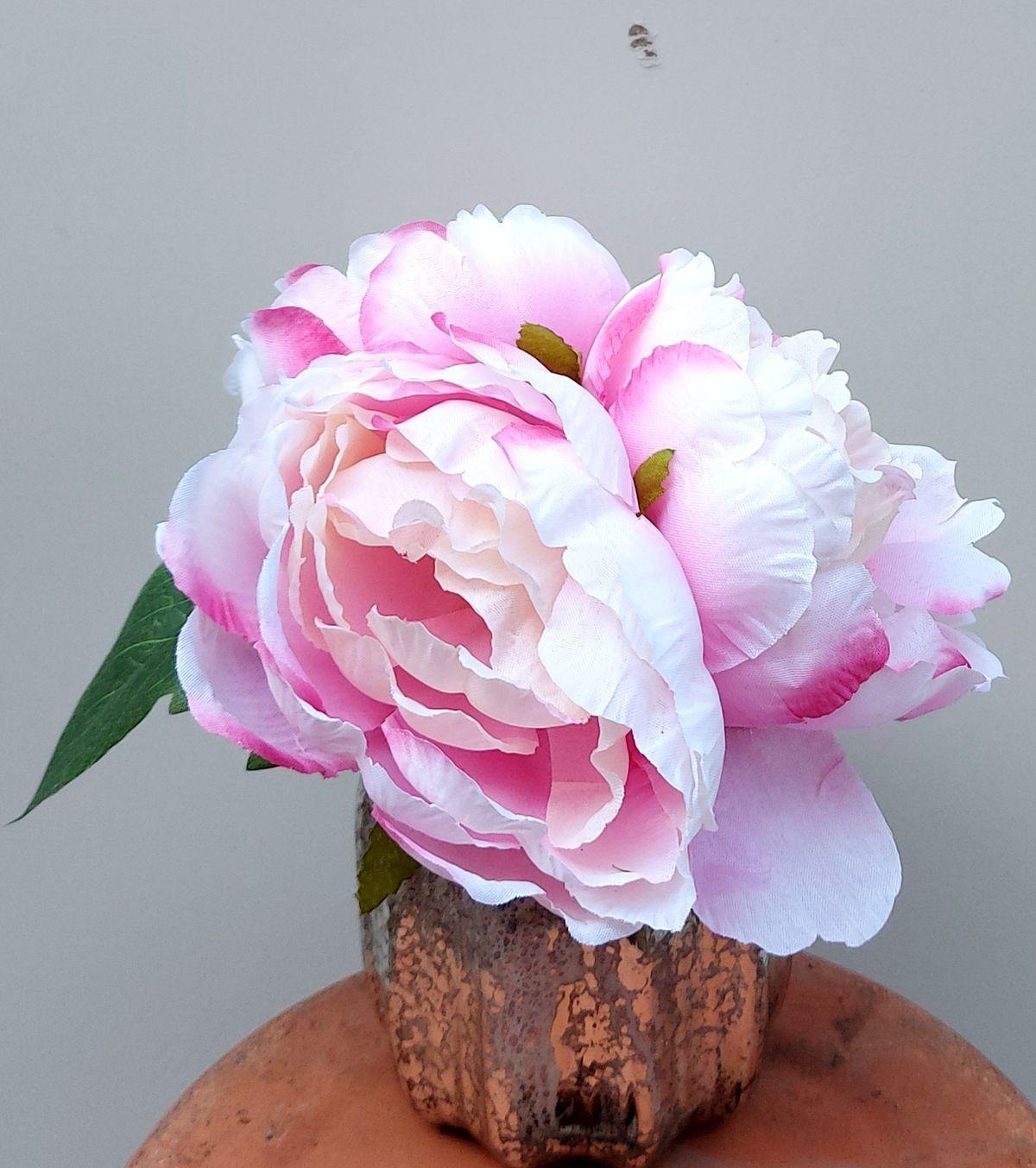 Kunst Blumenstrauß Pfingstrose VEIKO in Glasvase, rosa-creme, 15cm