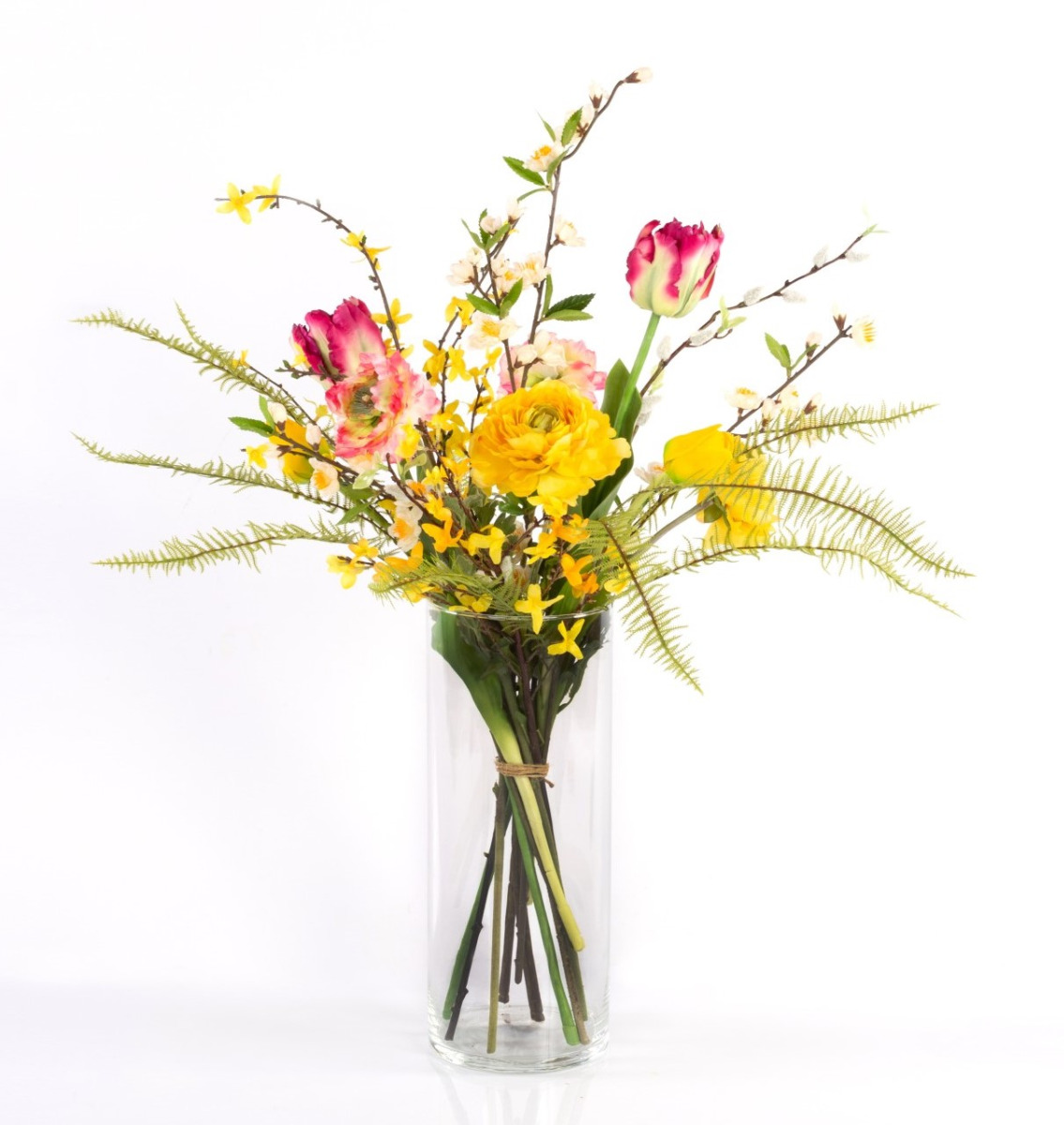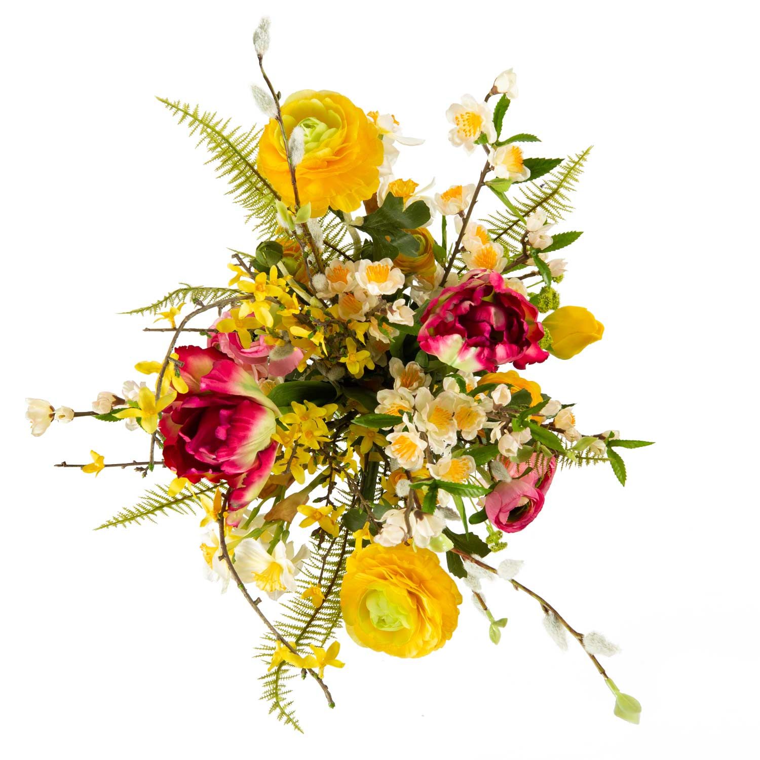 Kunst Frühlings Strauß PRIMAVERA, gelb-pink-weiß, 75cm, Ø45cm