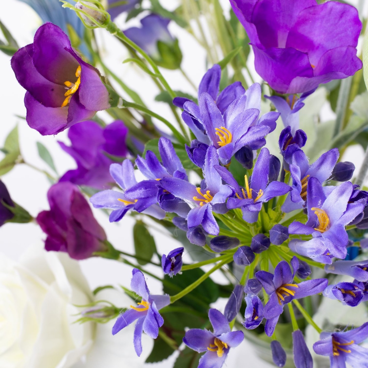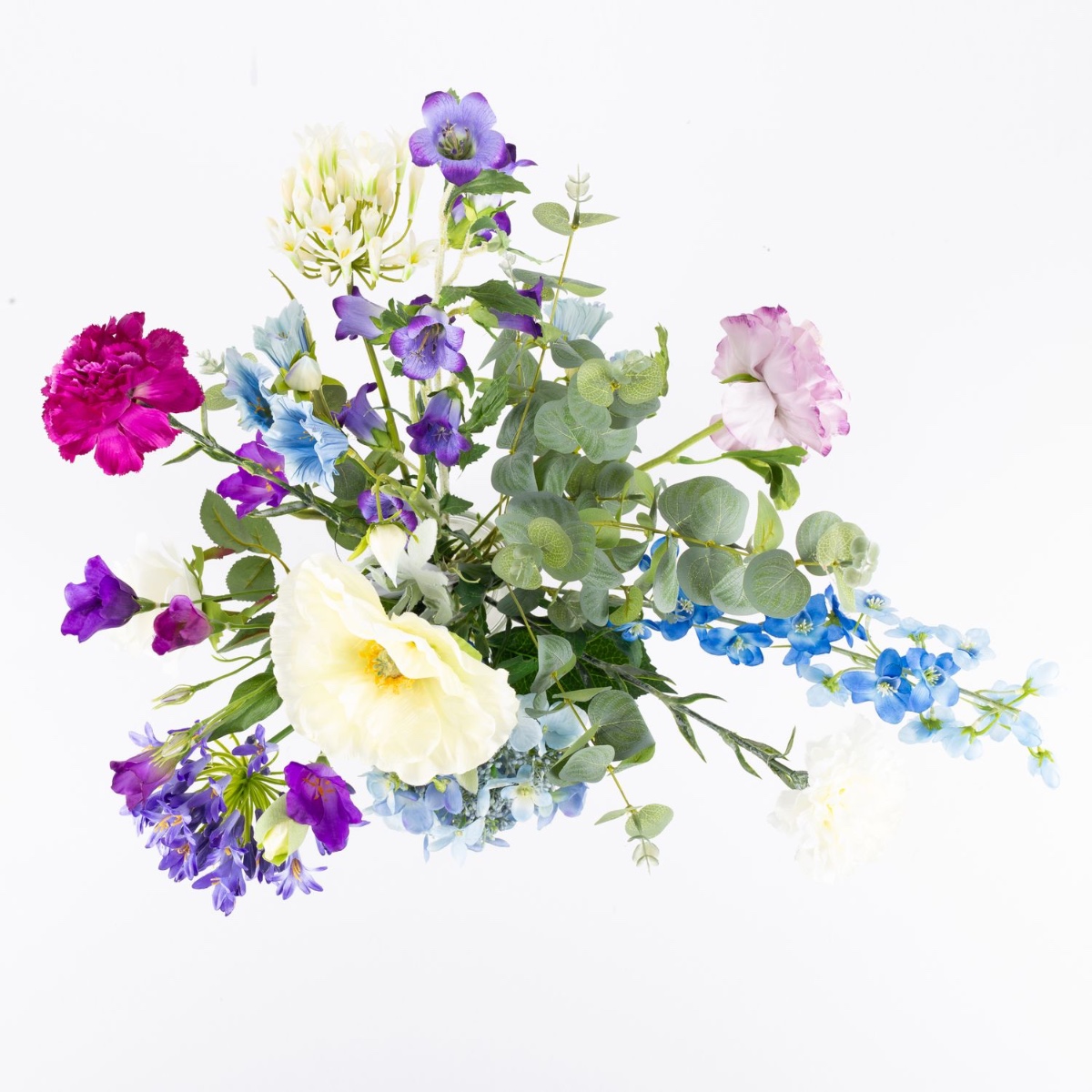 Kunst Frühlingsblumenstrauß AVIL, lila-blau,weiß, 60cm, Ø45cm