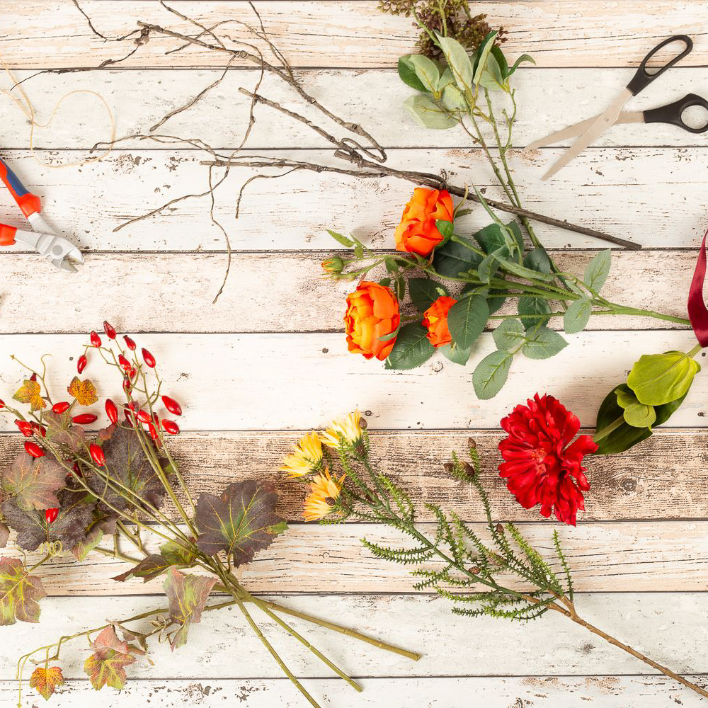 - Zusammengebunden mit einer Sisalschnur, die Blumen und Zweige können individuell gekürzt werden bzw. nach entfernen der Schnur auch einzeln für kreative Projekte verwendet werden