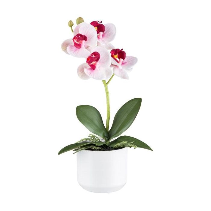 Kunst Phalaenopsis Orchidee WERKAN, Keramiktopf, Wurzeln, weiß-pink, 27cm