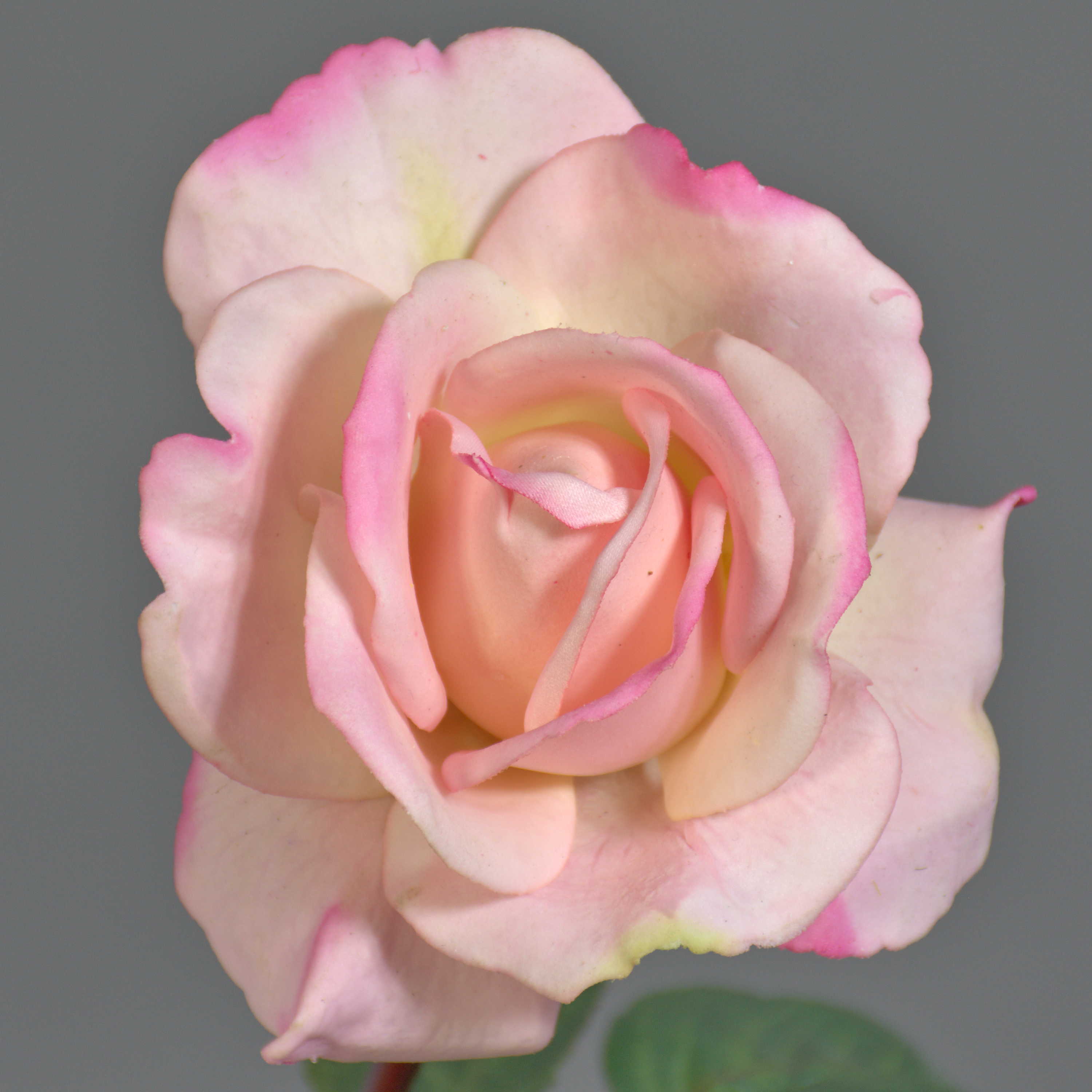 - Hochwertig verarbeitete offene rosa Blüte und viele grüne Textilblätter