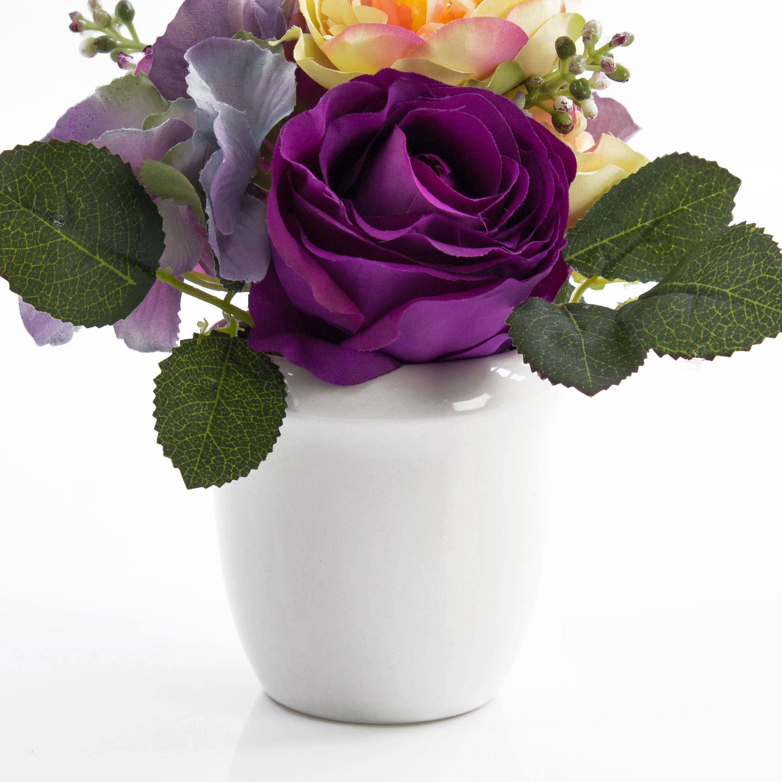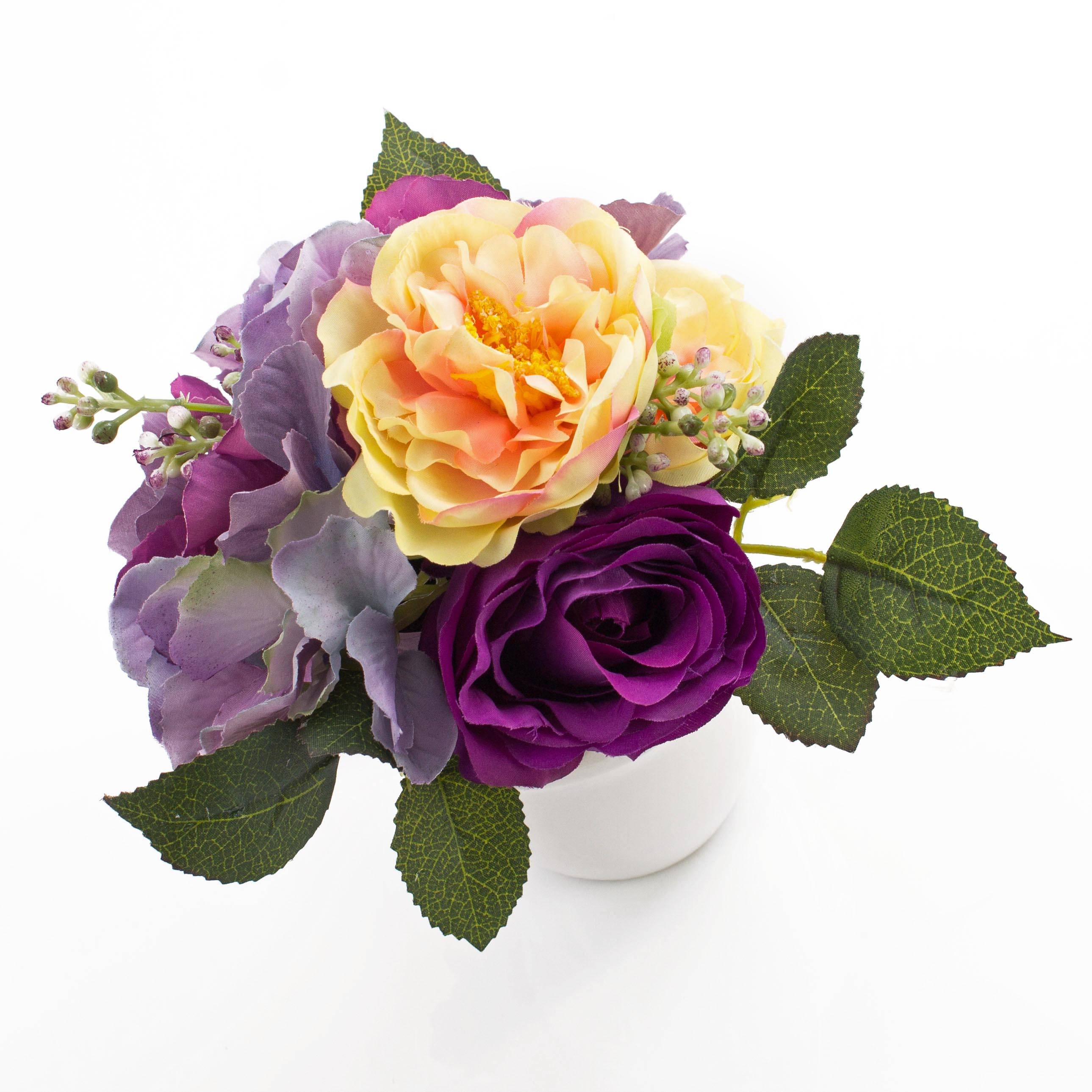 Kunst Rose Hortensie Gesteck FELINE Keramiktopf, lila, 17cm, Ø18cm