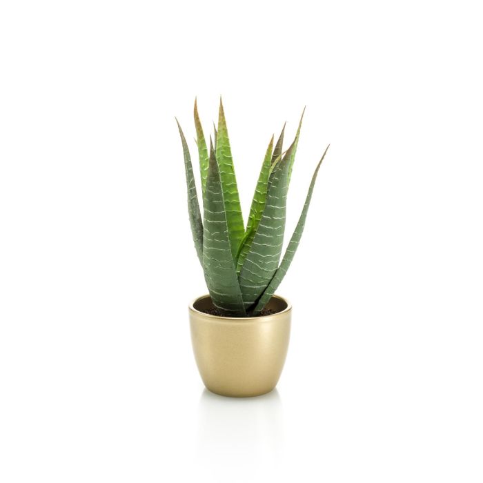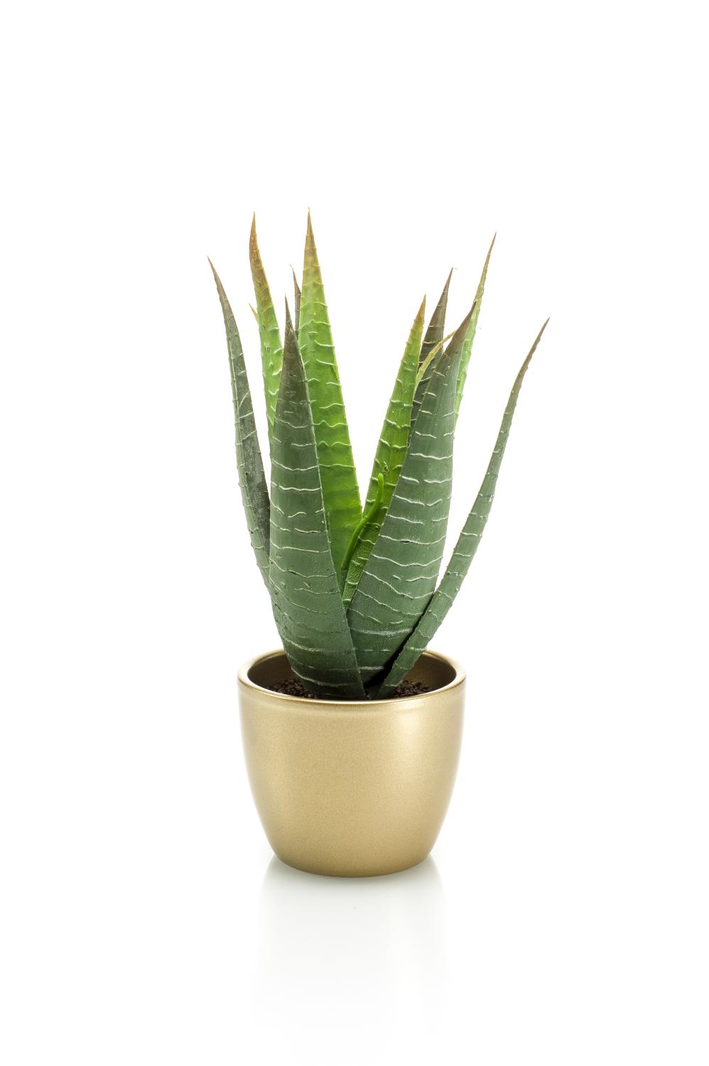 Kunst Sukkulente Aloe Variegata MARTINEZ, Keramiktopf gold, grün, 25cm, Ø17cm