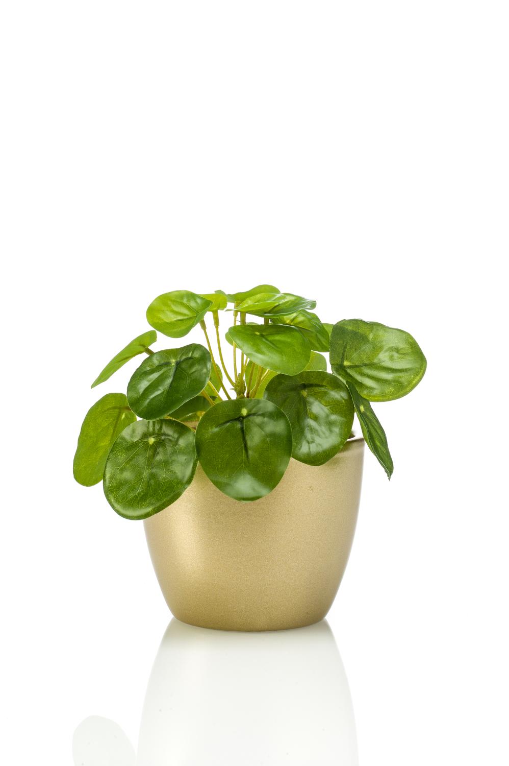 Kunst Sukkulente Glückstaler SYBIL im Keramiktopf gold, grün, 13cm