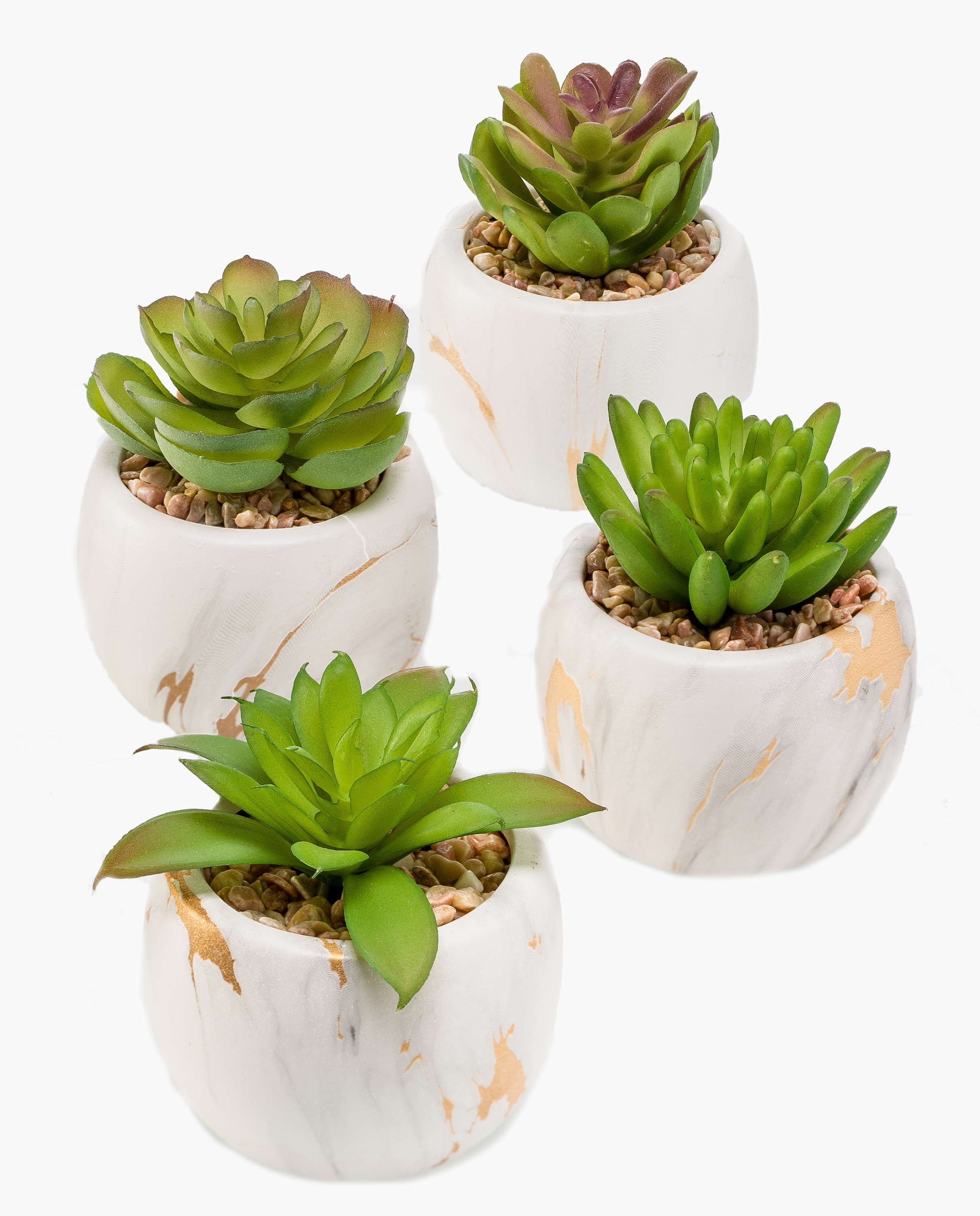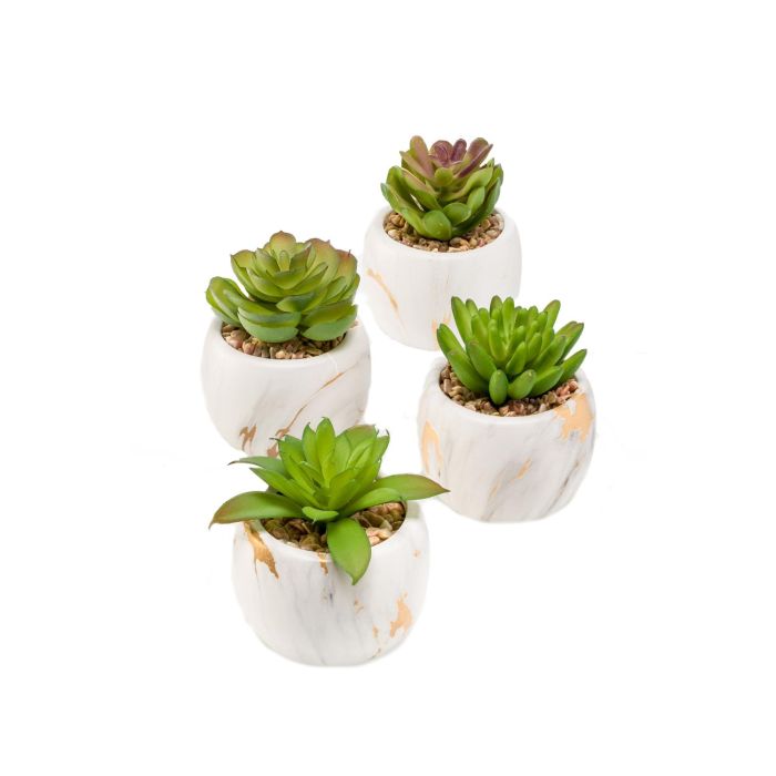 Kunst Sukkulenten LOYE im Marmortopf, 4 Stück, grün, 13-15cm