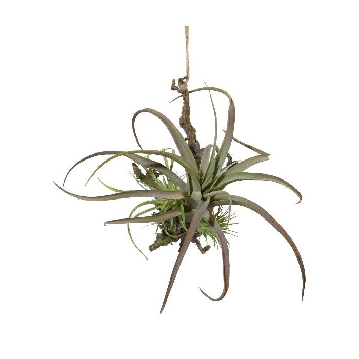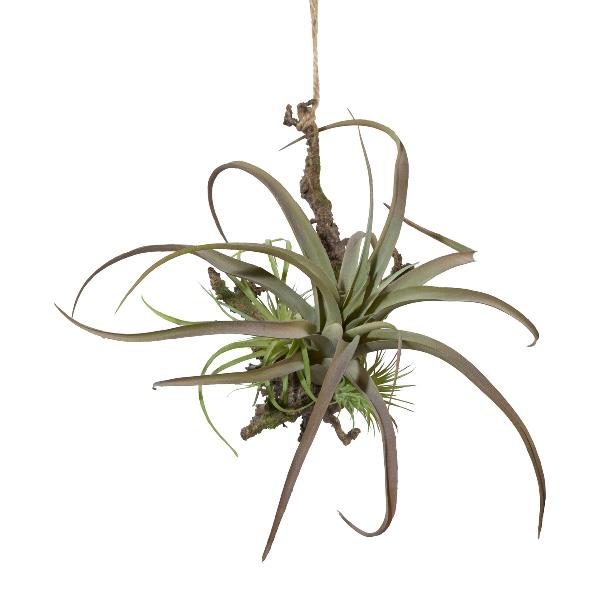 Kunst Tillandsien stricta Gesteck SNARFY auf Ast, hängend, grün, 21x27cm
