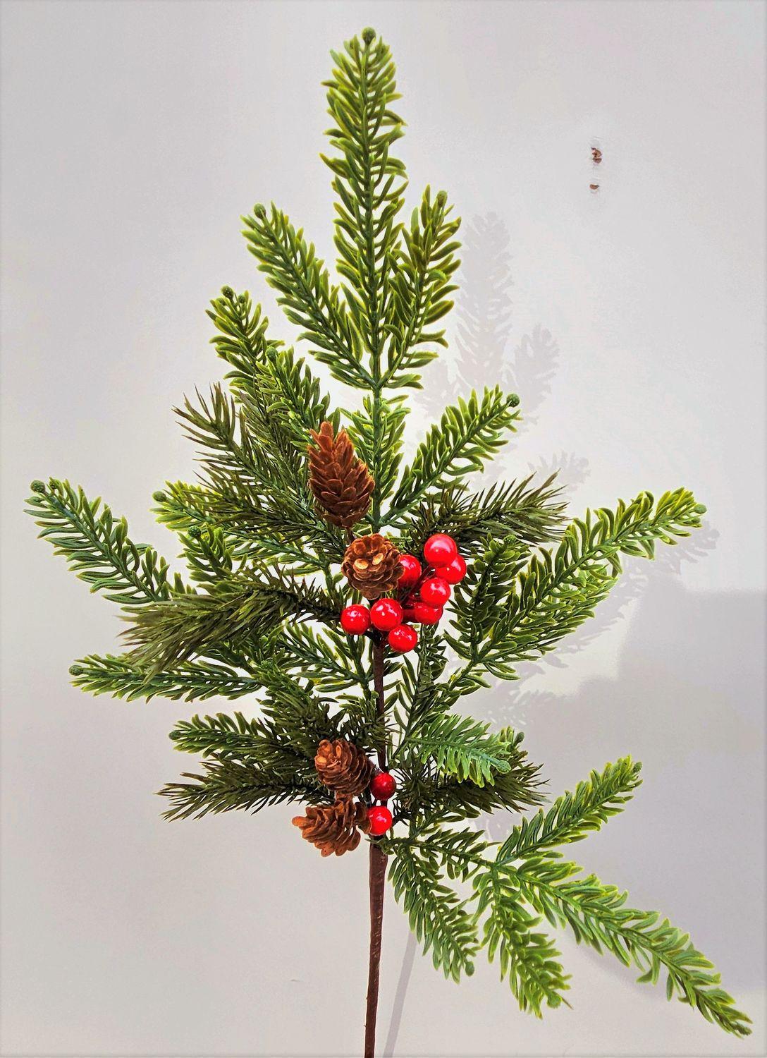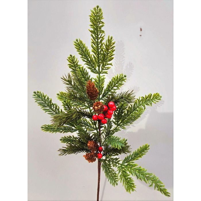 Kunst Zweig VARDALIA, Tanne, Beeren, Zapfen, rot-grün, 75cm