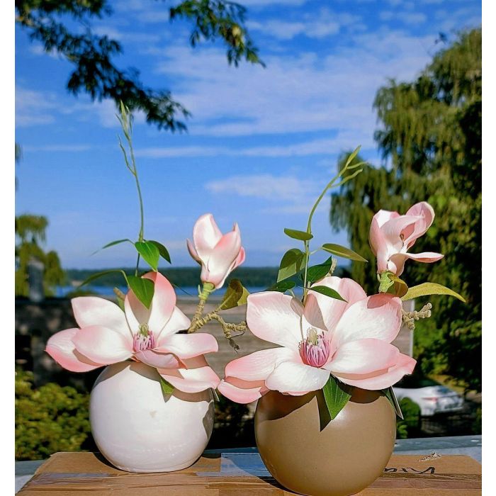 Kunstblume Magnolie FEMI im beigen Keramiktopf, aprikose, 20cm, Ø17cm