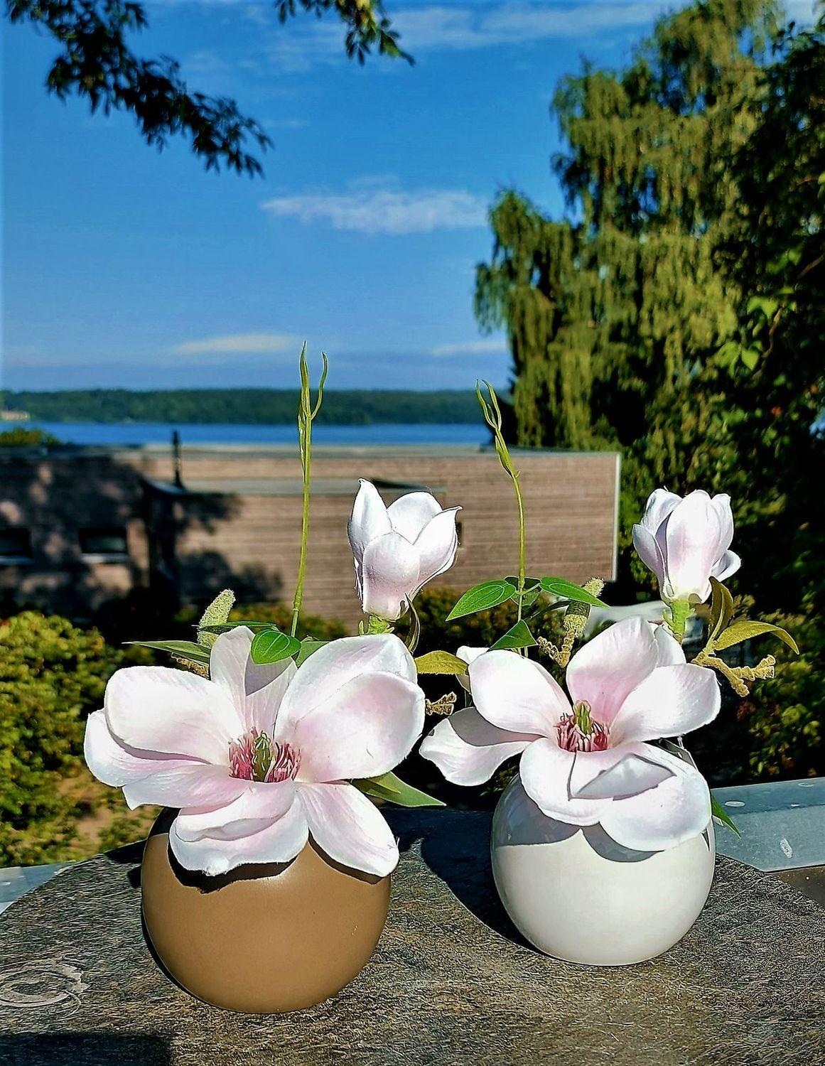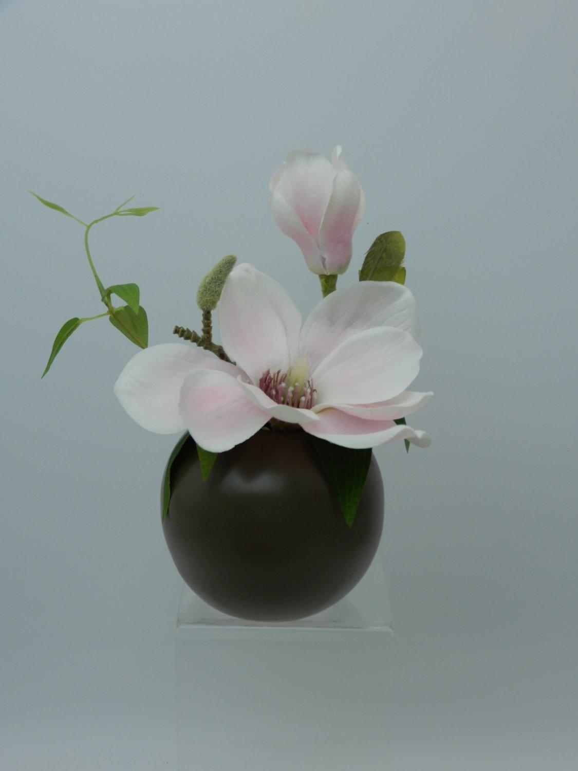 Kunstblume Magnolie FEMI im beigen Keramiktopf, zartrosa, 20cm, Ø17cm