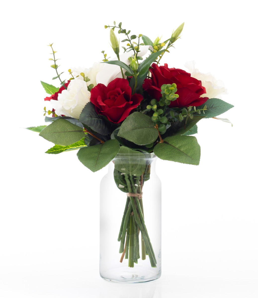 Kunstblumenstrauß elegant ELAYNA, rot-weiß, 35cm, Ø30cm