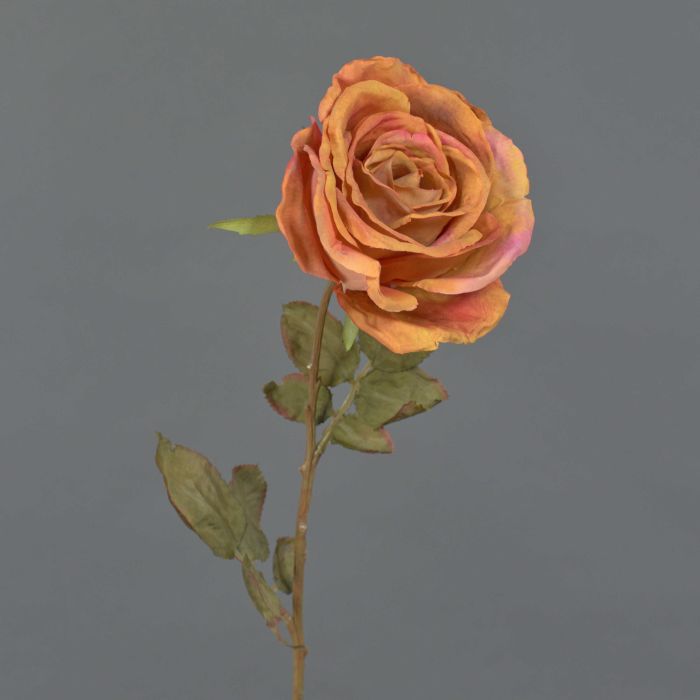 Kunstrose NAJMA, Trockenoptik, orange-pink, 65cm, Ø10cm