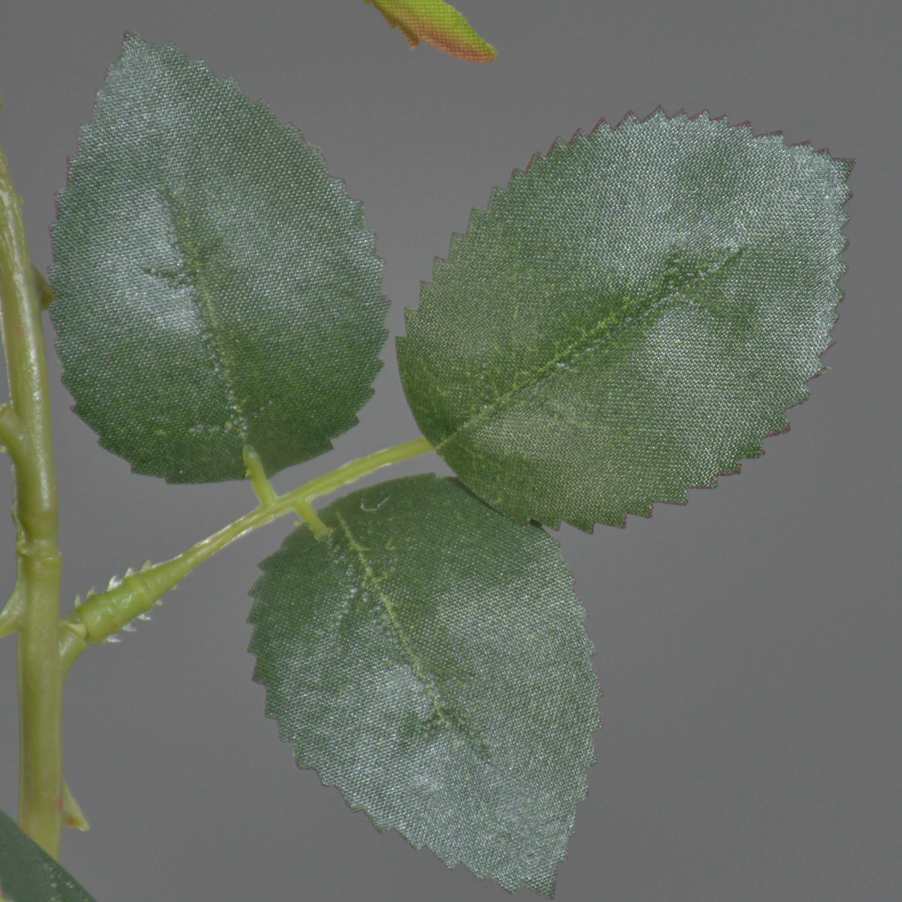 - Hochwertig verarbeitete offene pink-rosa-farbige Blüte und viele grüne Blätter, alles aus Textilfaser