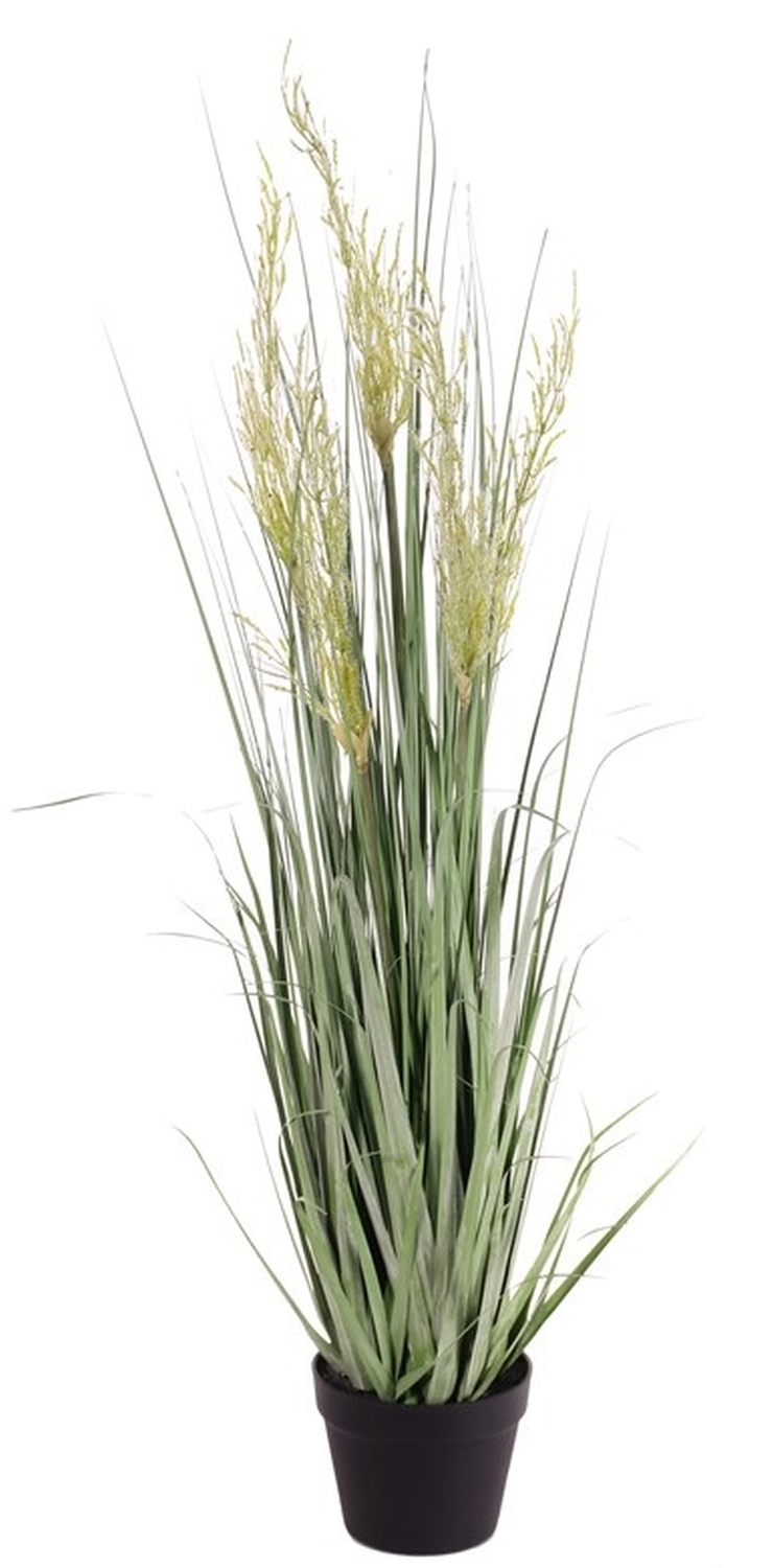 Das Kunstgras DAFINYA in der Farbe grün hat ein Gesamtmaß von ca. 120 cm und ist im Innentopf befestigt.