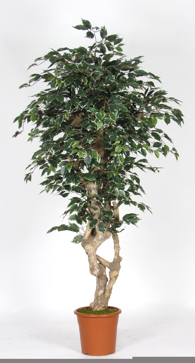 Kunststoff Ficus Benjamina SILENO, Echtstamm, grün-weiß, 175cm - Made in Italy