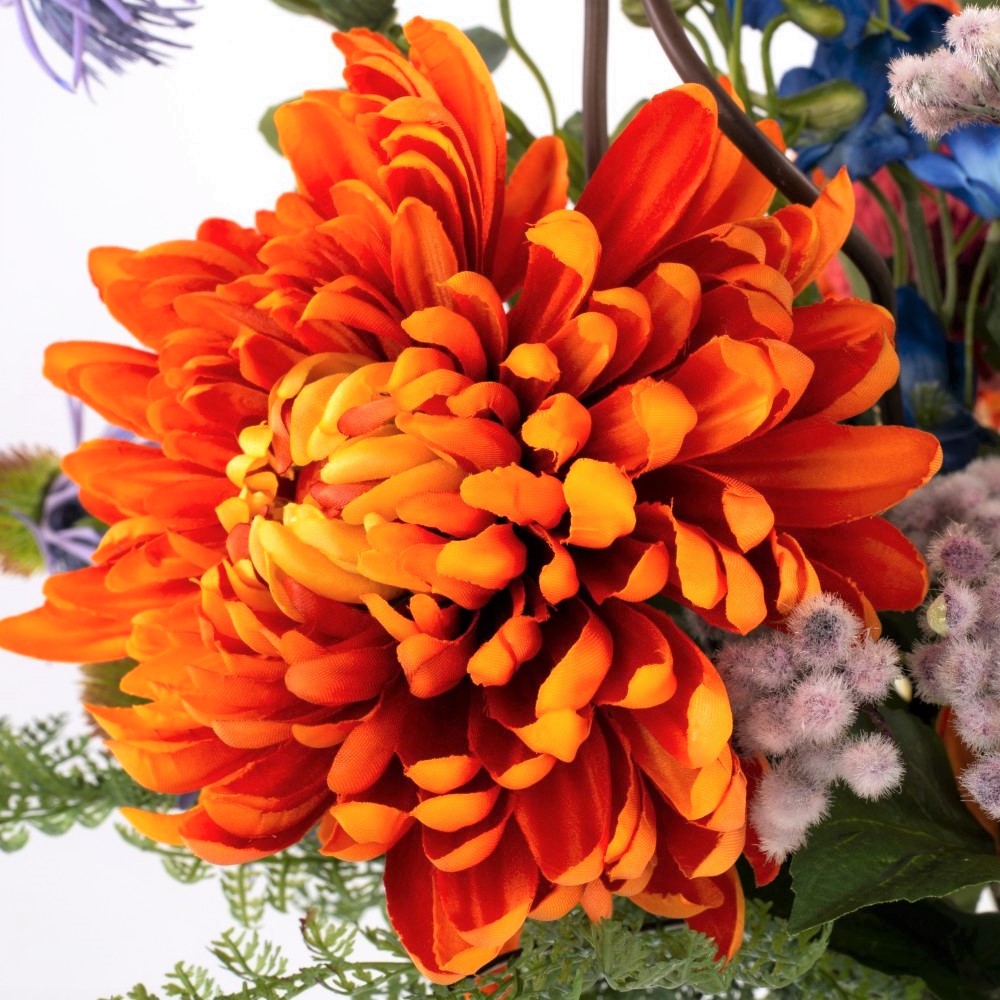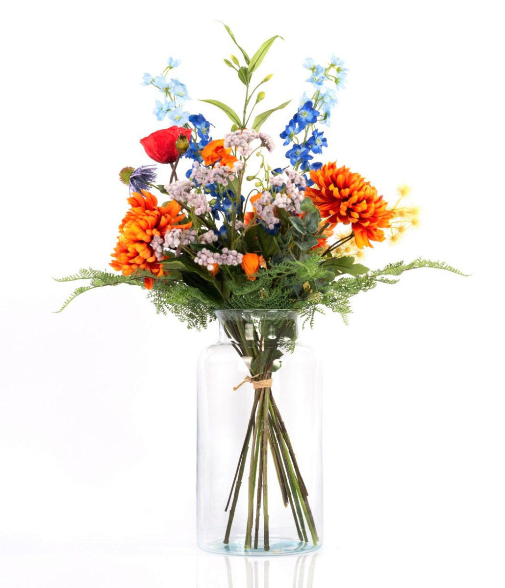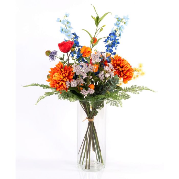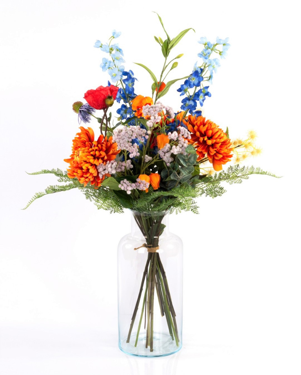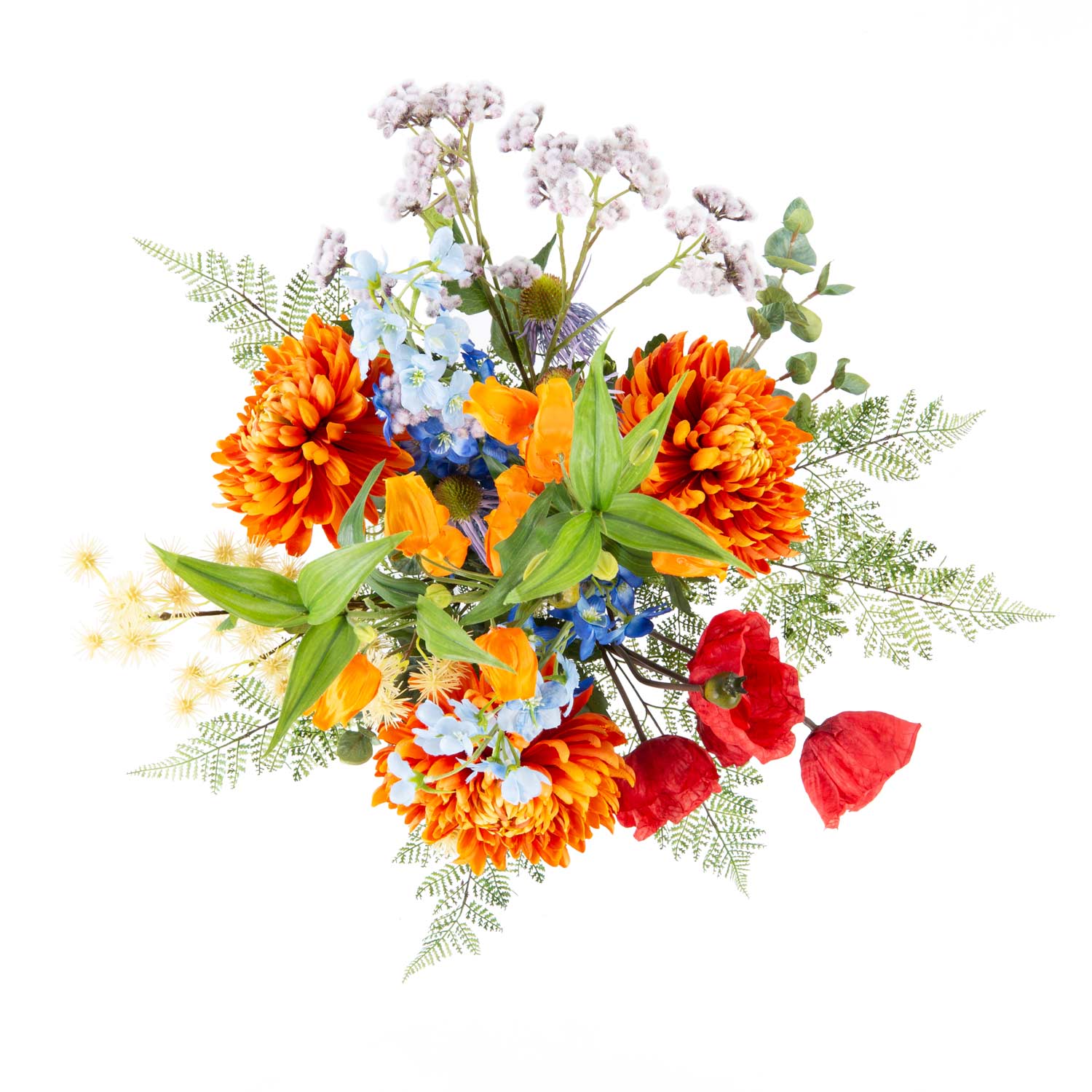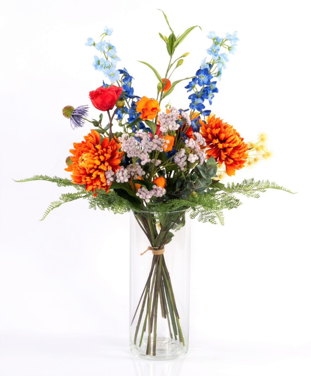 Kunststoff Sommerstrauß LOLANA, Rittersporn, orange-blau, 70cm, Ø50cm