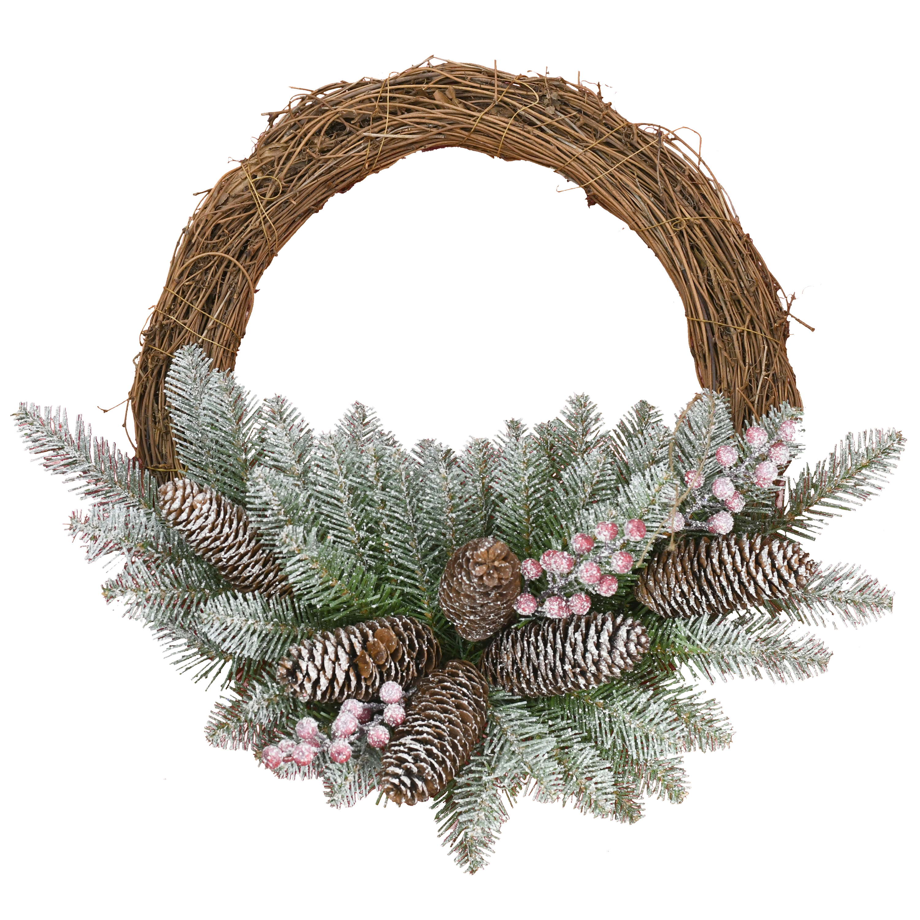 - Beschneiter künstlicher Kranz mit Zapfen und roten Beeren