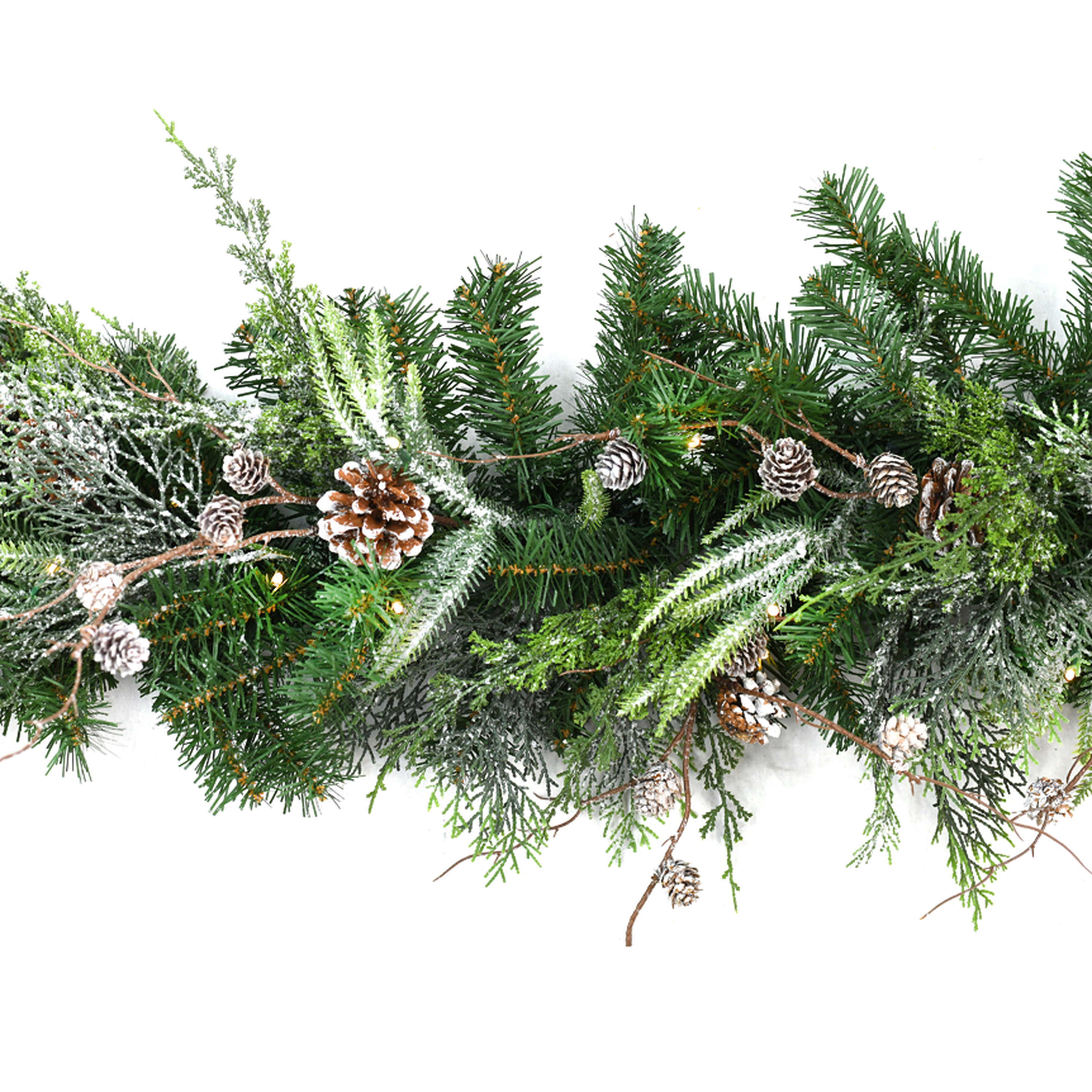 - Beschneite Kunst Tannengirlande mit Zapfen und LEDs für Ihre Weihnachtsdekoration