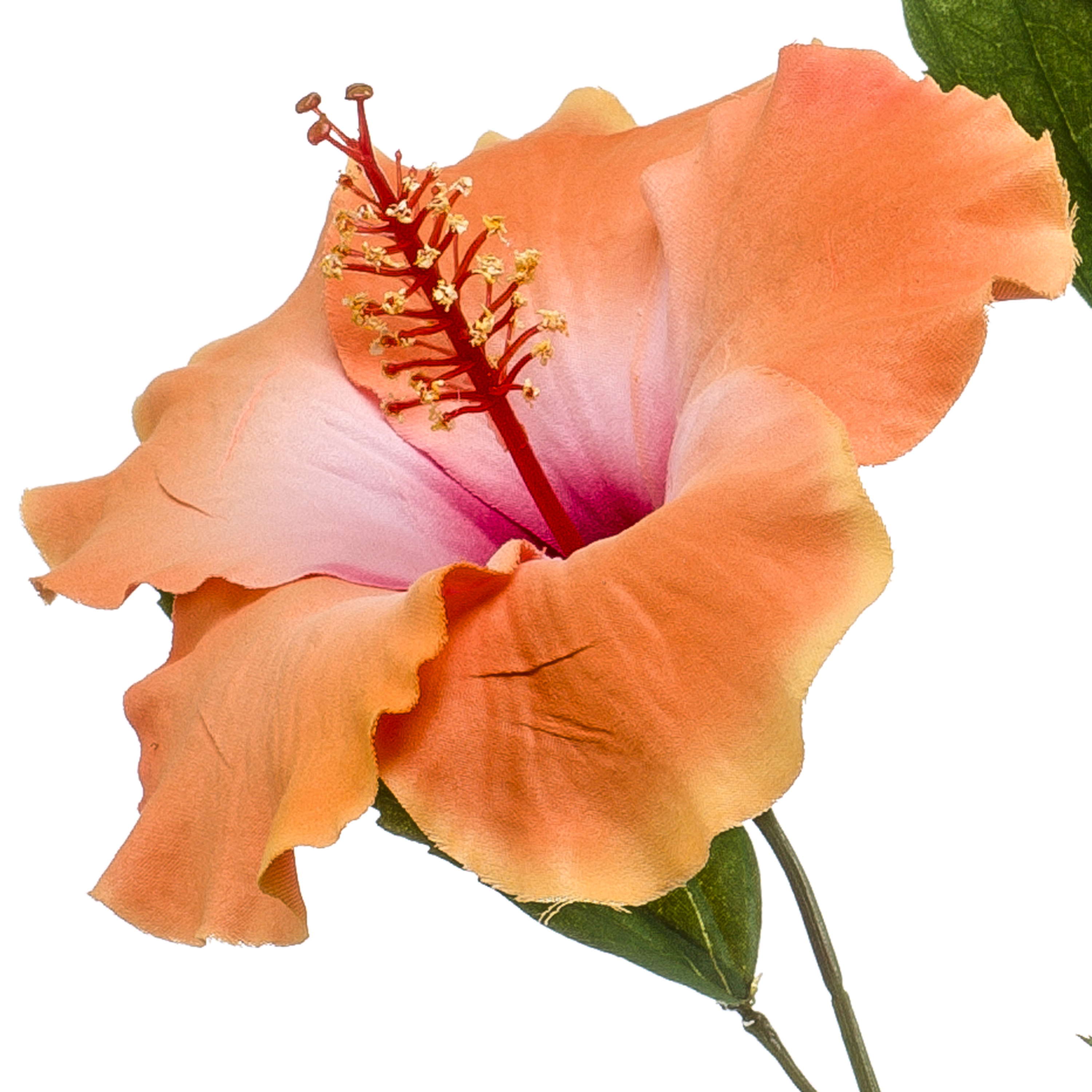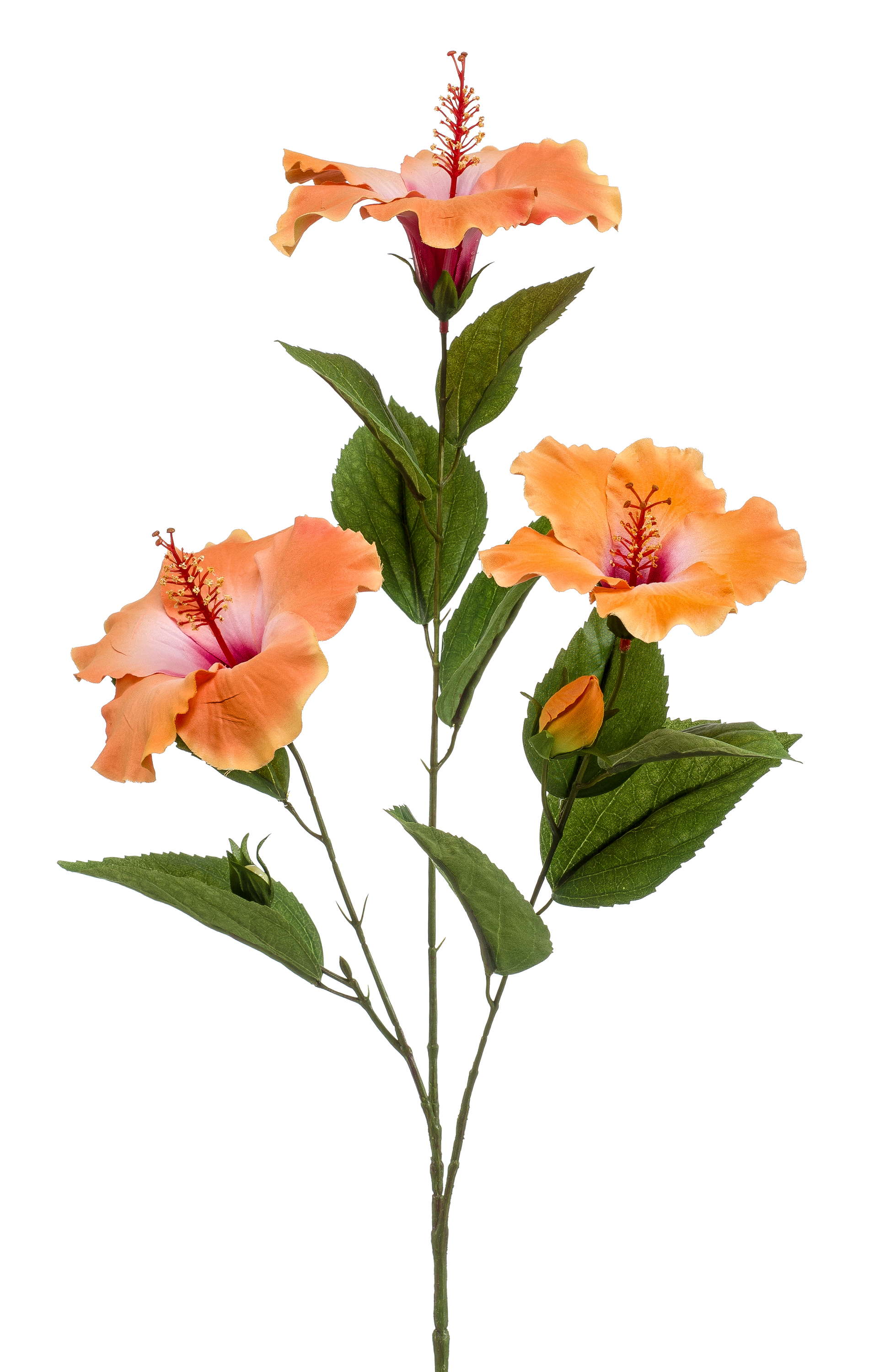 Kunstzweig Hibiskus AMADOU mit Blüten, orange, 80cm