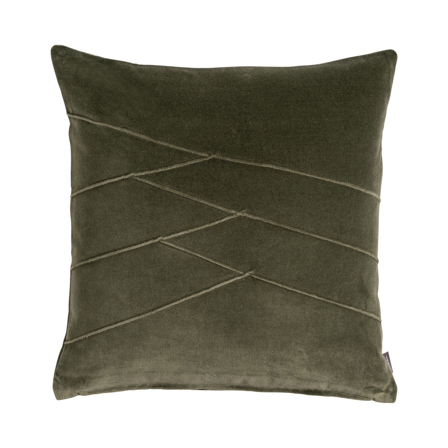 Kuscheliges Samt Kissen NOELANI, schräge Ziernähte, olivgrün, 45x45cm
