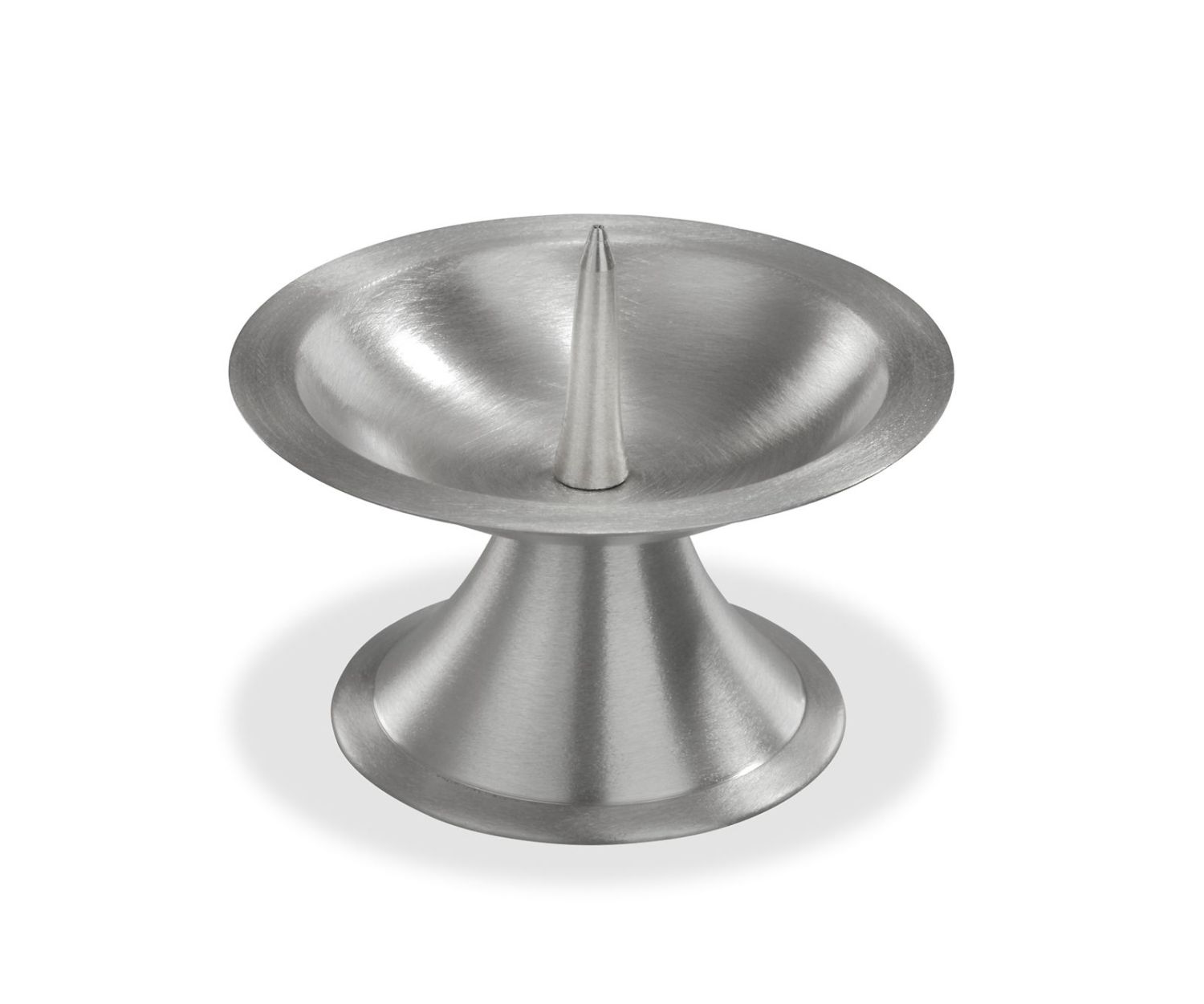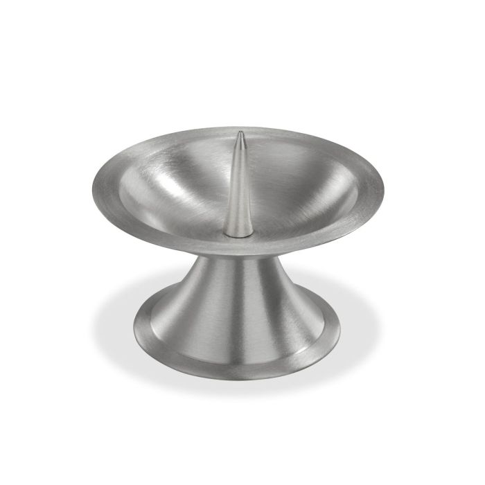 Messing Kerzenständer OLIVERIO mit Dorn, für Kerzen Ø5-6cm, vernickelt, matt gebürstet, silber, 5cm, Ø9cm