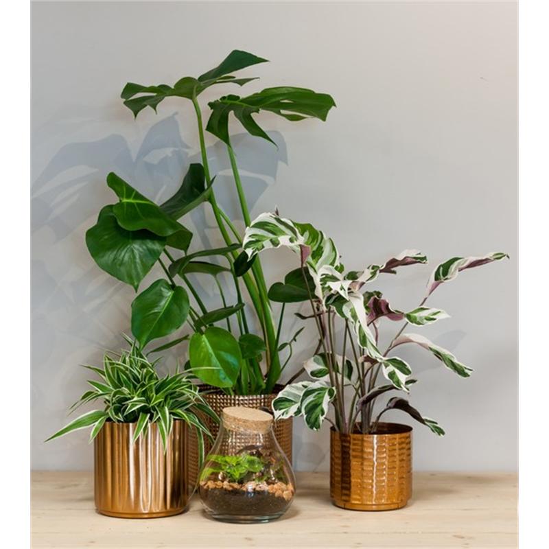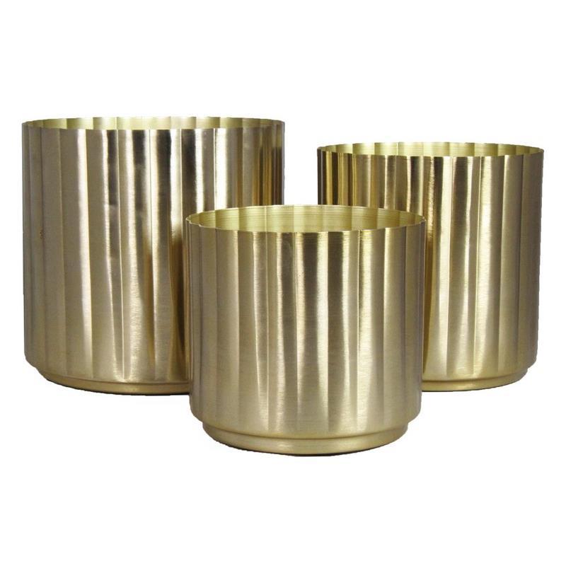 Metall Blumentopf GUVUL, 3 Stück, Rillen, gold, 13-20cm, Ø14-20cm