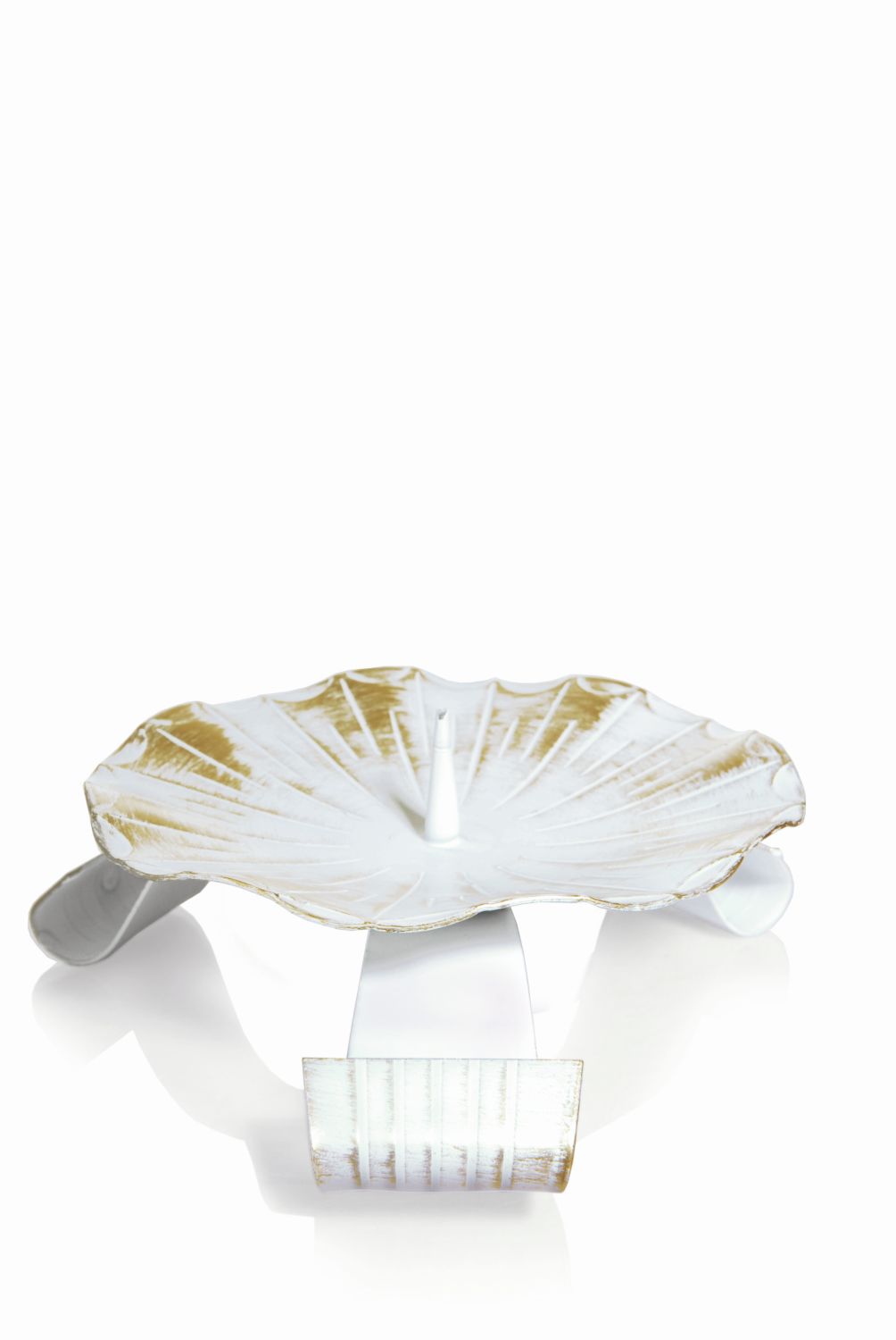 Metall Kerzenständer RAQUEL mit Dorn, für Kerzen Ø10cm, weiß-gold, Ø14cm