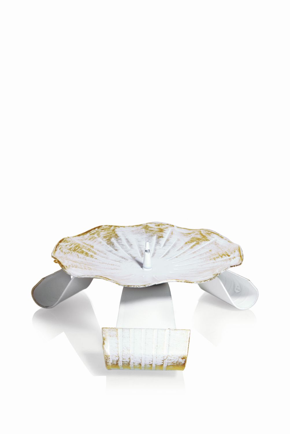 Metall Kerzenständer RAQUEL mit Dorn, für Kerzen Ø7-8cm, weiß-gold, Ø12cm