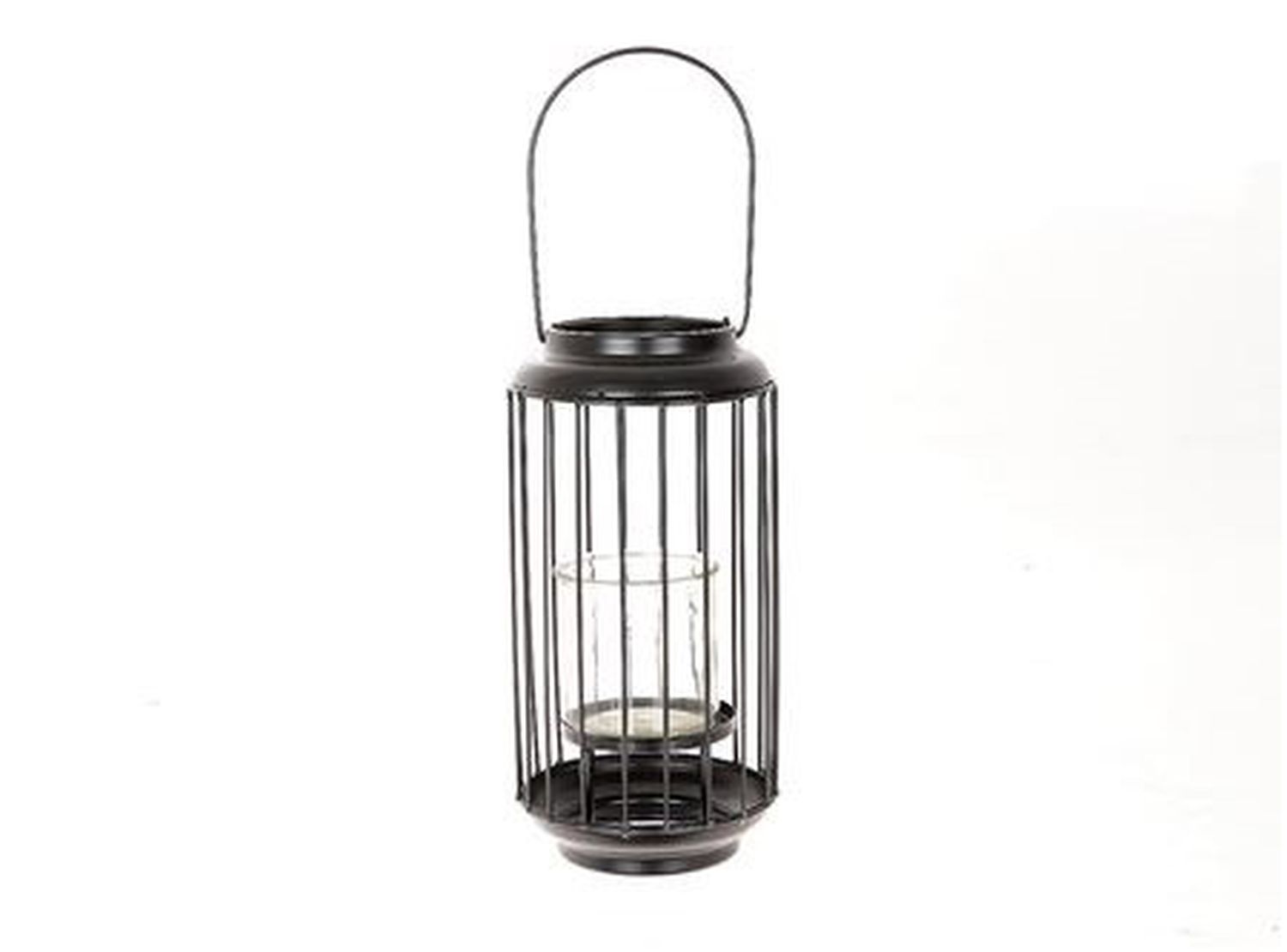 Metall Laterne MUIRANDA mit Henkel, Glaseinsatz, schwarz, 28,5cm, Ø9,5cm