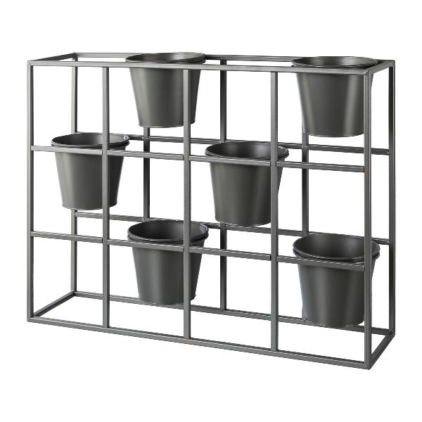 Metall Pflanzen Raumteiler UTOPIA mit 6 Pflanztöpfen, grau, 65x17x52cm