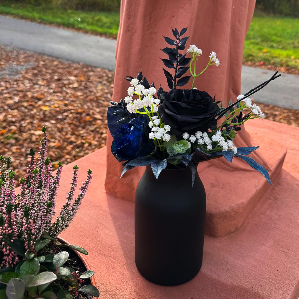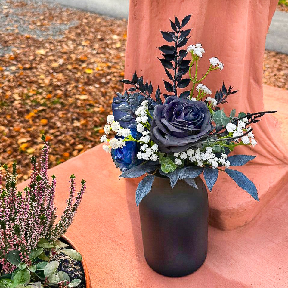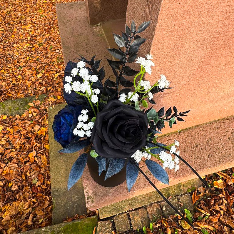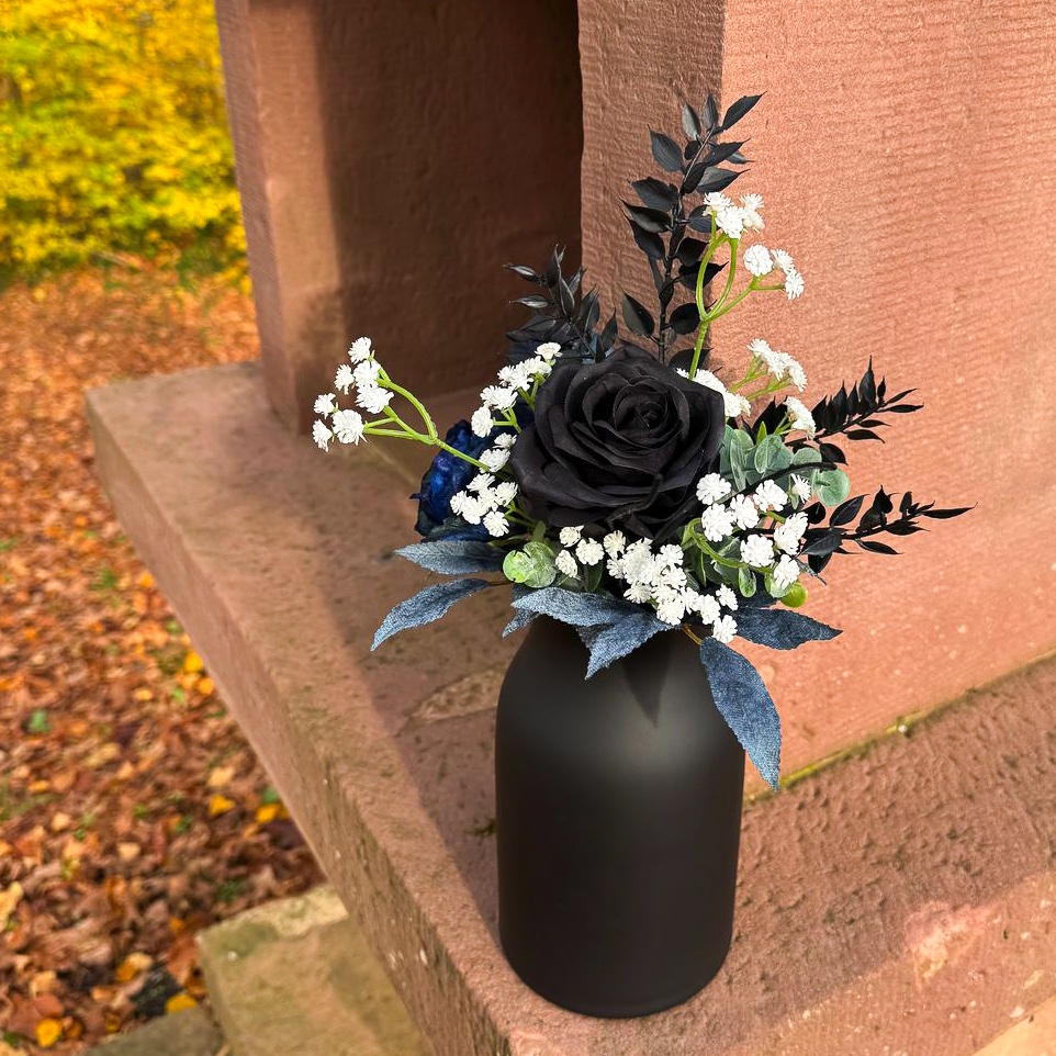 Wenn florale Kunst auf zeitlose Eleganz trifft! Für eine traumhafte Hochzeit in Südfrankreich auf einer idyllischen Halbinsel durften wir die komplette Floristik gestalten. Die Feier fand Mitte November statt – eine Zeit, in der sich Eleganz und Tiefe in der Farbgestaltung besonders wirkungsvoll entfalten. Die Kundin wünschte sich ein modernes, edles Konzept in Schwarz und Dunkelblau, ergänzt durch feine weiße Akzente für einen klassischen Hochzeitseindruck. Alle dunkelblauen Elemente erhielten eine samtige Oberfläche, die besonders in der kühleren Jahreszeit eine edle, warme Wirkung entfaltet. Als leichtere Variante des Brautstraußes wurde der Wurfstrauß im selben edlen Stil gefertigt – handlich, elegant und ideal für den symbolischen Moment des Blumenwurfs. Wollen auch Sie Ihre Hochzeit mit künstlichen Blumen feiern? Shop the Look!