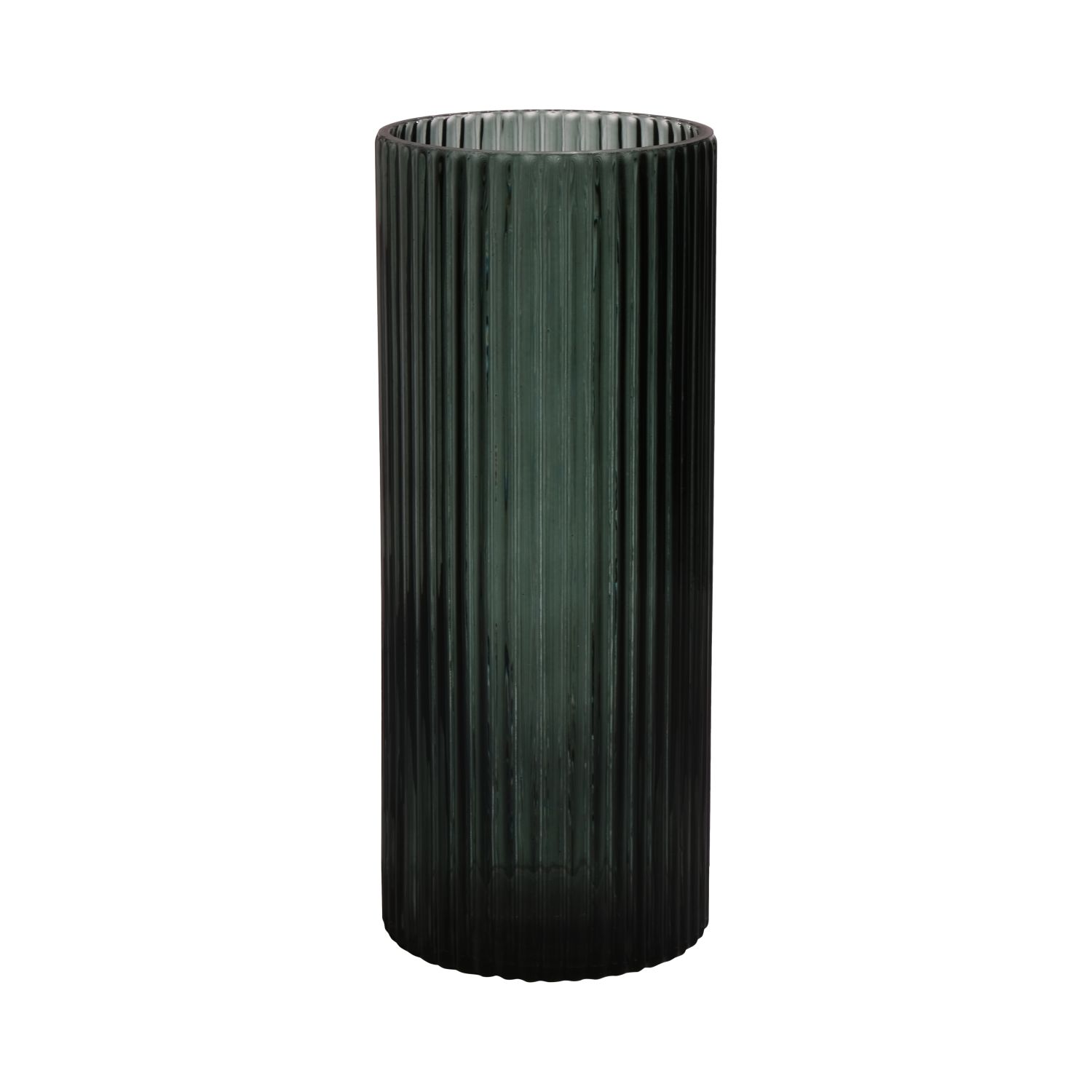 Moderne Glasvase SORCHA mit Rillen, waldgrün-klar, 30cm, Ø12,5cm