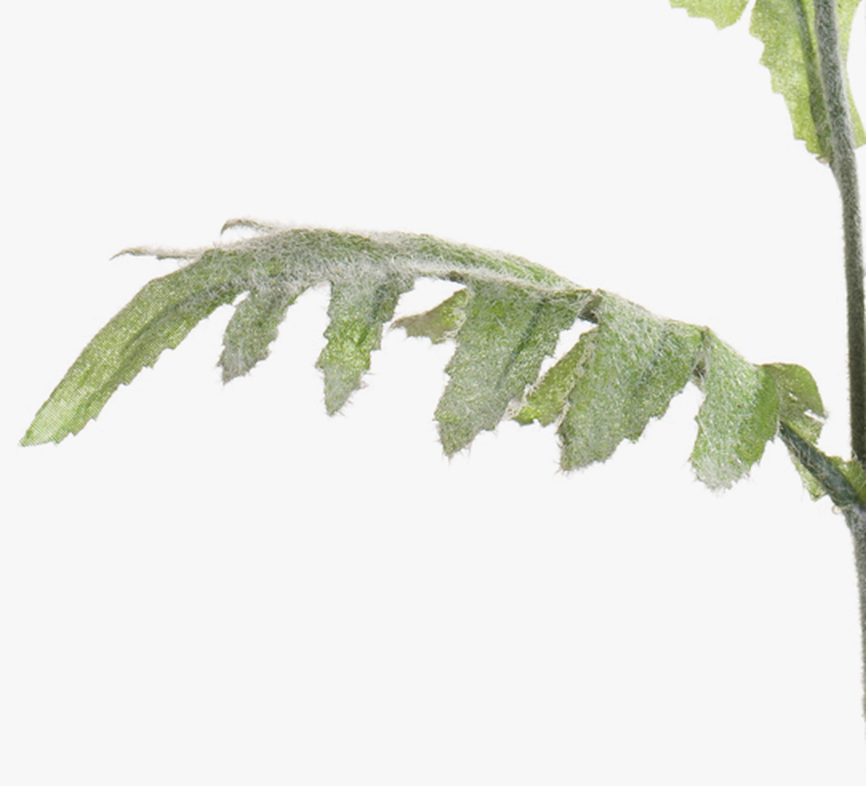 - 4 grüne Blätter mit samtiger Oberfläche aus hochwertiger Textilfaser in franziger Spitzform