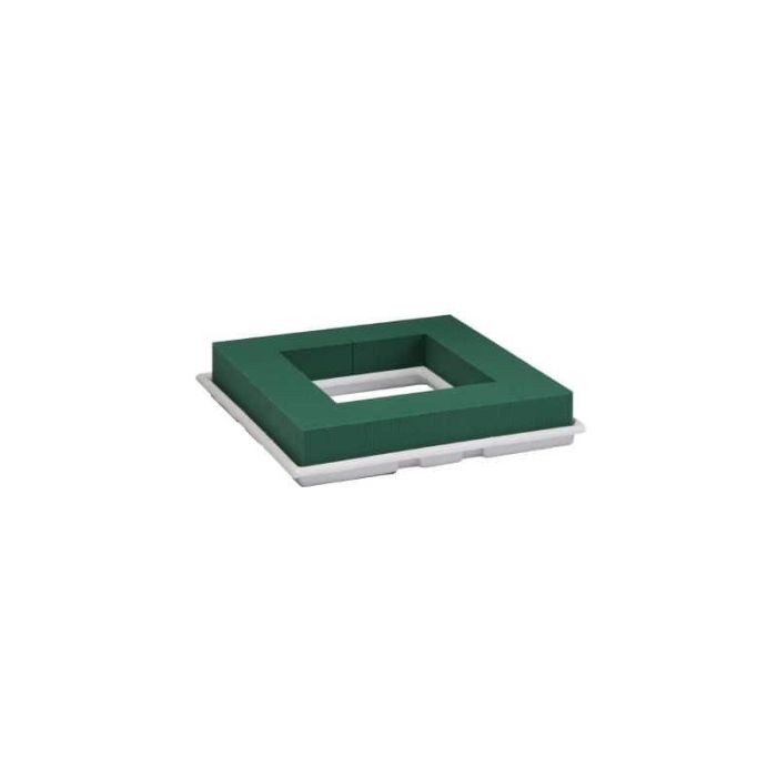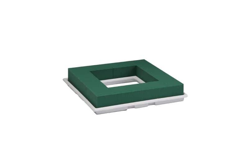 OASIS® Nass Steckmasse quadratischer Kranz offen in Papercompound Schale, grün, 27x27x4,5cm