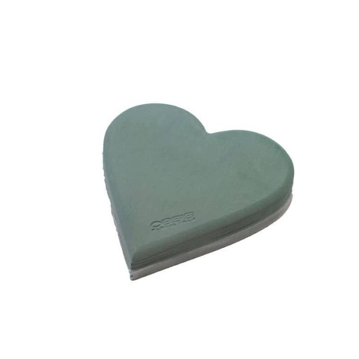 OASIS® Nasssteckschaum Herz, Hochzeitsdeko, EcoBase Hartschaumboden, grün, 30x29x4,5cm