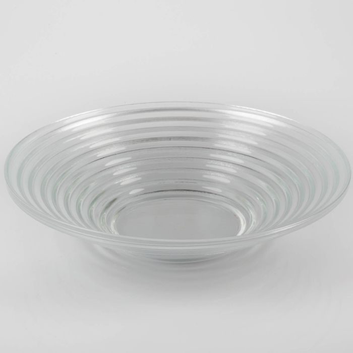 Runde Glas Schale SELMA de Luxe mit eingearbeiteten Zierrillen. Die außergewönliche Dekoschale in Transparentglas hat einen Außendurchmesser von ca. 27 cm und eignet sich gut für duftende Potpourri, Streublumen.
