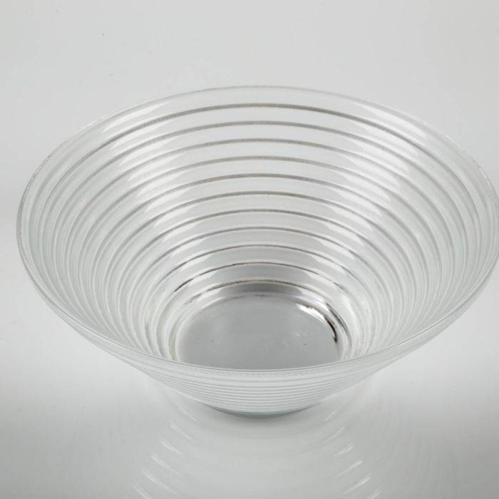 Runde Glas Schale SELMA de Luxe mit eingearbeiteten Zierrillen. Die außergewönliche Dekoschale in Transparentglas hat einen Außendurchmesser von ca. 19 cm und eignet sich gut für Snacks und Fingerfood.