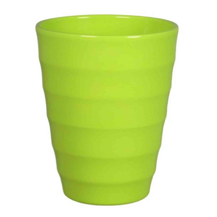 Orchideenvase IZEH aus Keramik in Farbe apfelgrün mit einem Durchmesser von ca. 14 cm und einer Höhe von ca. 17 cm.