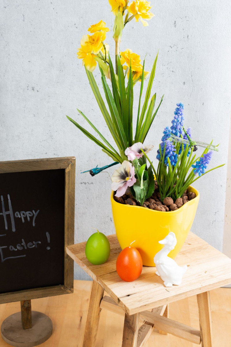 Frühlingserwachen! Osterglocken und Traubenhyazinthen sind die typischen Blumen für den Frühling. Arrangiert in einem farblich passenden Übertopf verbreiten sie Osterstimmung in Ihrem Zuhause. Die Kerzen in Eiform runden das Ensemble bestens ab. Shop the Look!