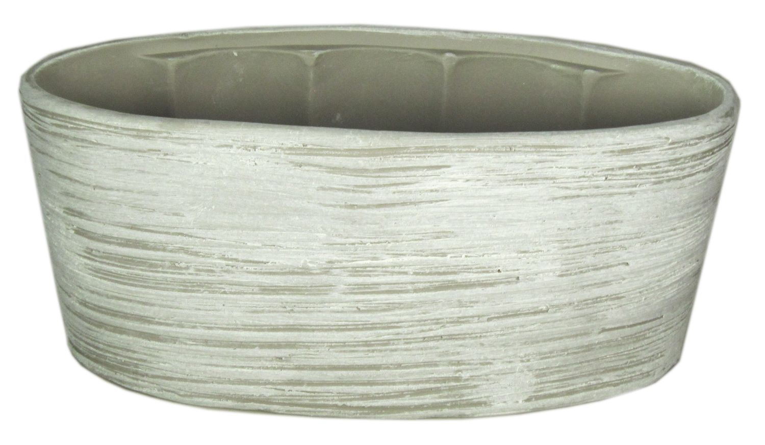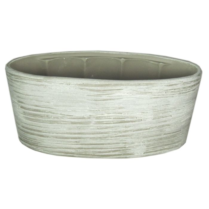 Ovale Keramik Orchideenschale ADELPHOS, Rillen, weiß-hellgrau, 33x15x15cm