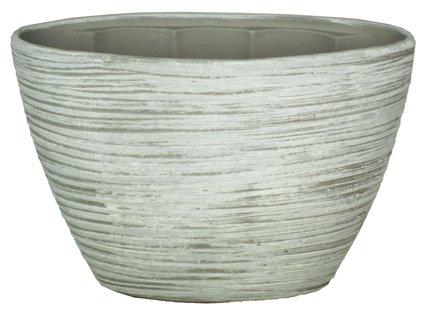 Pflanztopf ADELPHOS aus Keramik in Farbe weiß-hellgrau mit einer Länge von ca. 32 cm und einer Höhe von ca. 22,5 cm.
