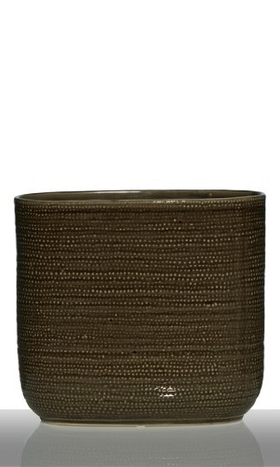 Ovaler Keramiktopf ALICK mit Rillen, braun, 27x12,5X24cm