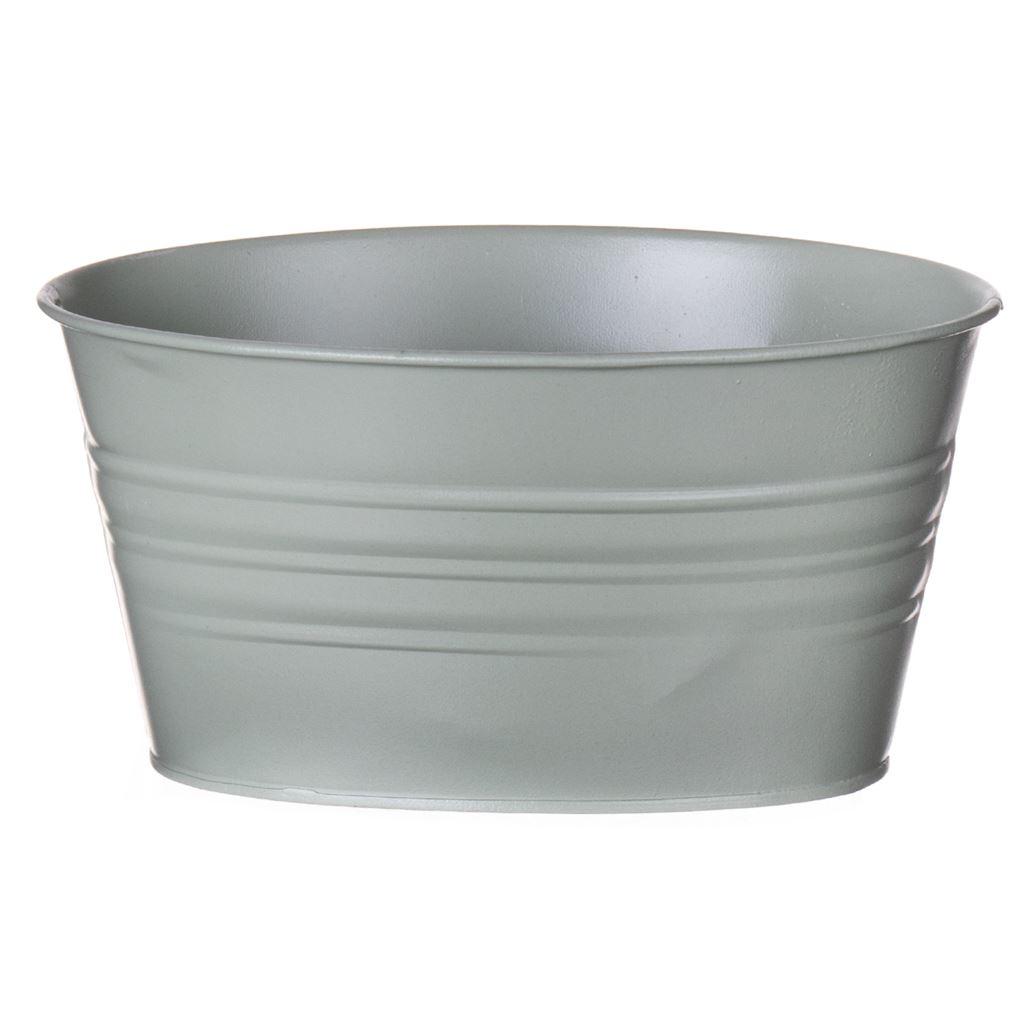Ovaler Zinktopf MICOLATO mit Rillen, jadegrün, 19x13,5x10cm