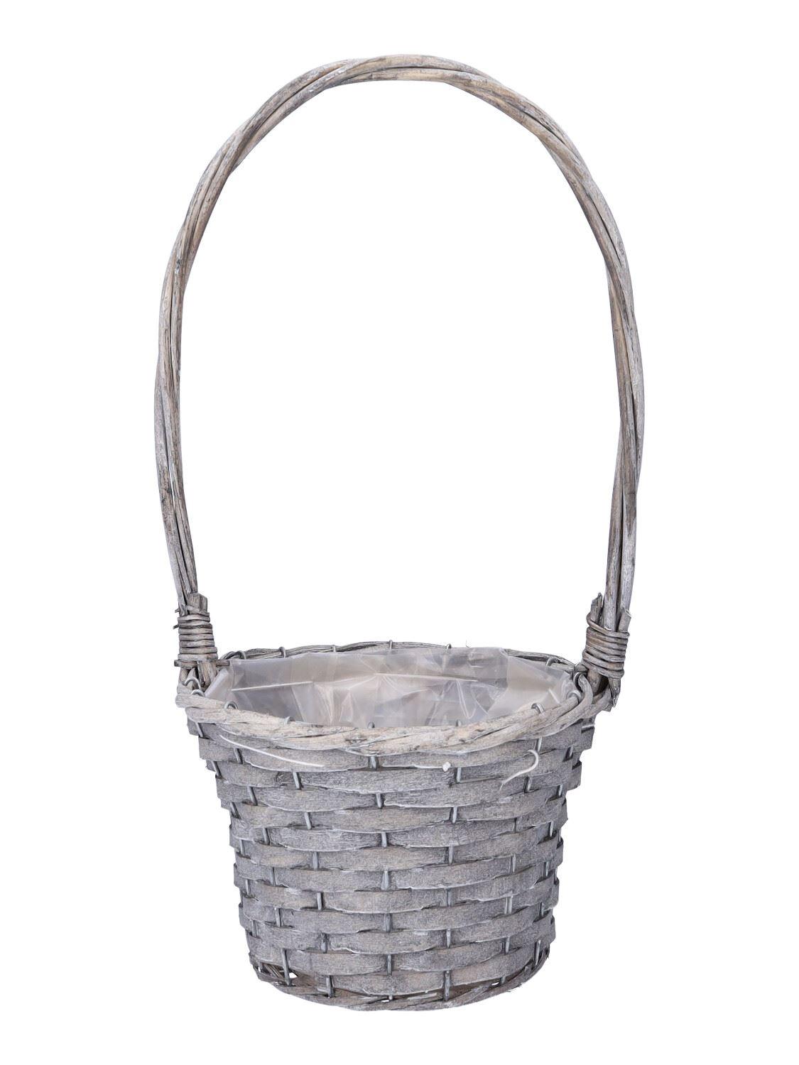 Pflanzkorb BARONIKA mit Henkel, Weide, grau, 48cm, Ø25cm