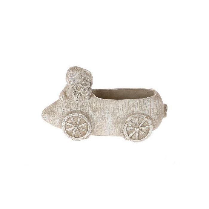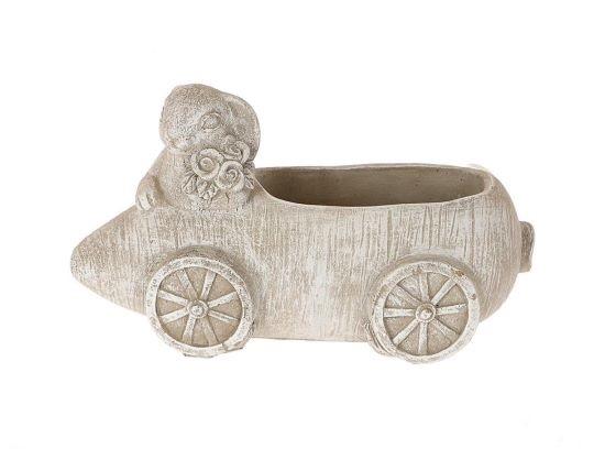 Pflanztopf Auto RIANAS mit Hase, Zement, Osterdeko, grau-weiß, 22x12x12,5cm