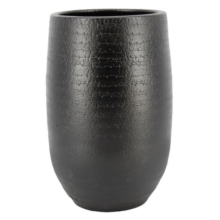 Pflanzvase Keramik DEIRA mit Maserung, schwarz-matt, 50cm, Ø29cm