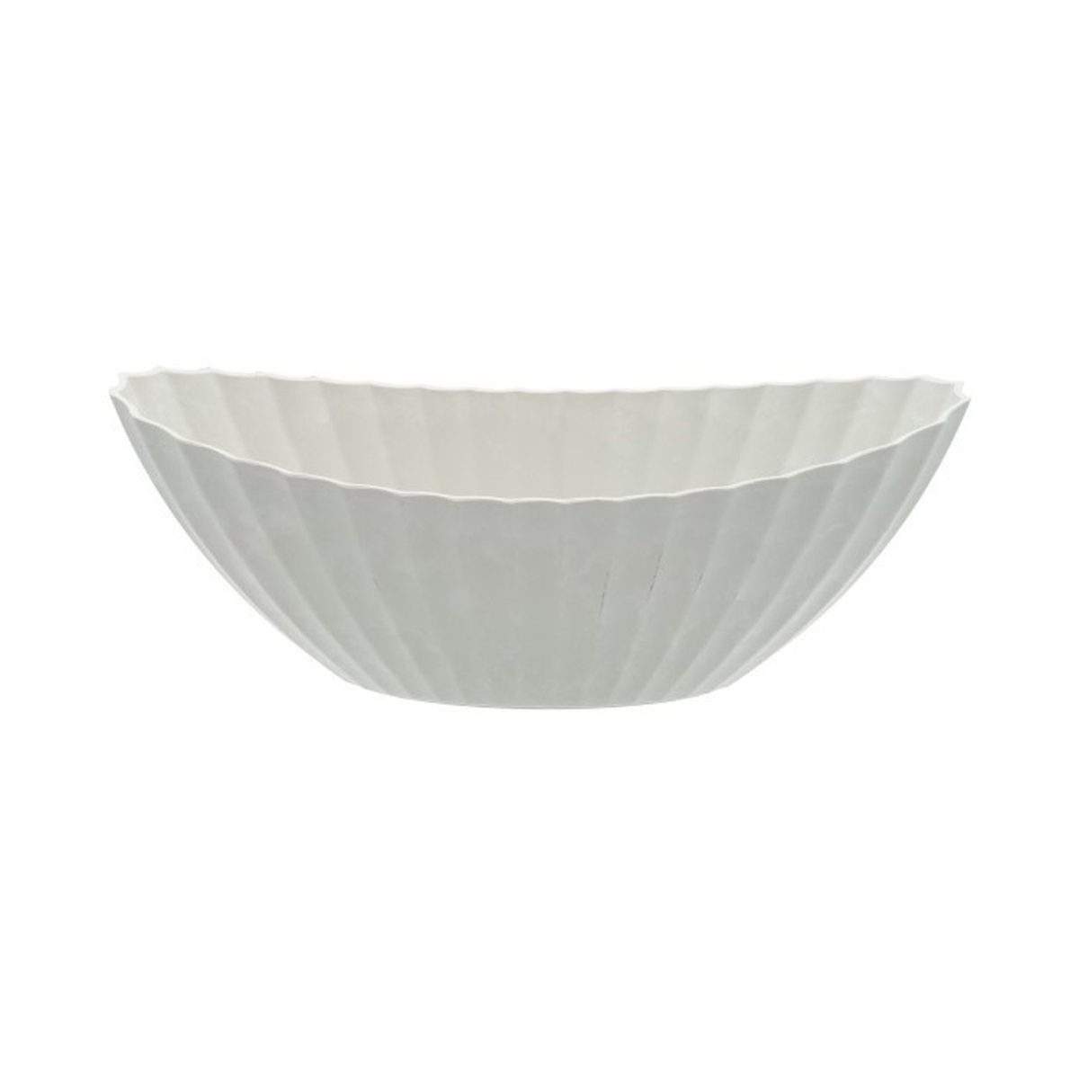 Ovale Deko Schale KENNYA mit Rillen, Kunststoff, weiß, 36x16x14cm