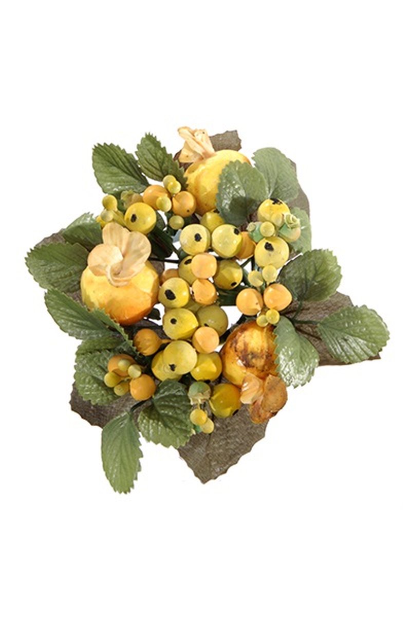 Plastik Kerzenkranz STELLAN mit Schneebeeren, Knospen, gelb-grün, Ø10cm