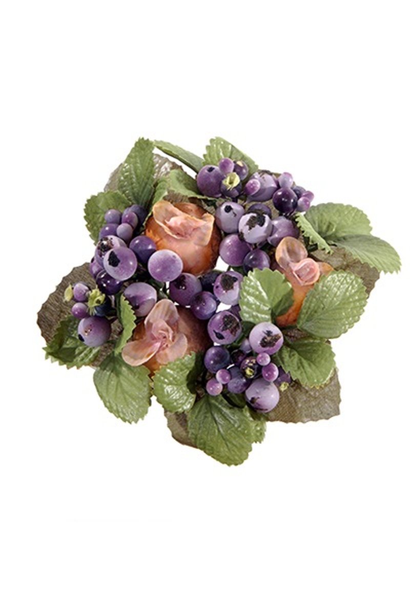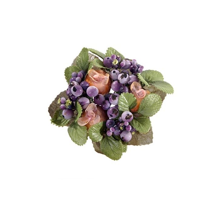 Plastik Kerzenkranz STELLAN mit Schneebeeren, Knospen, lila-lachs, Ø10cm